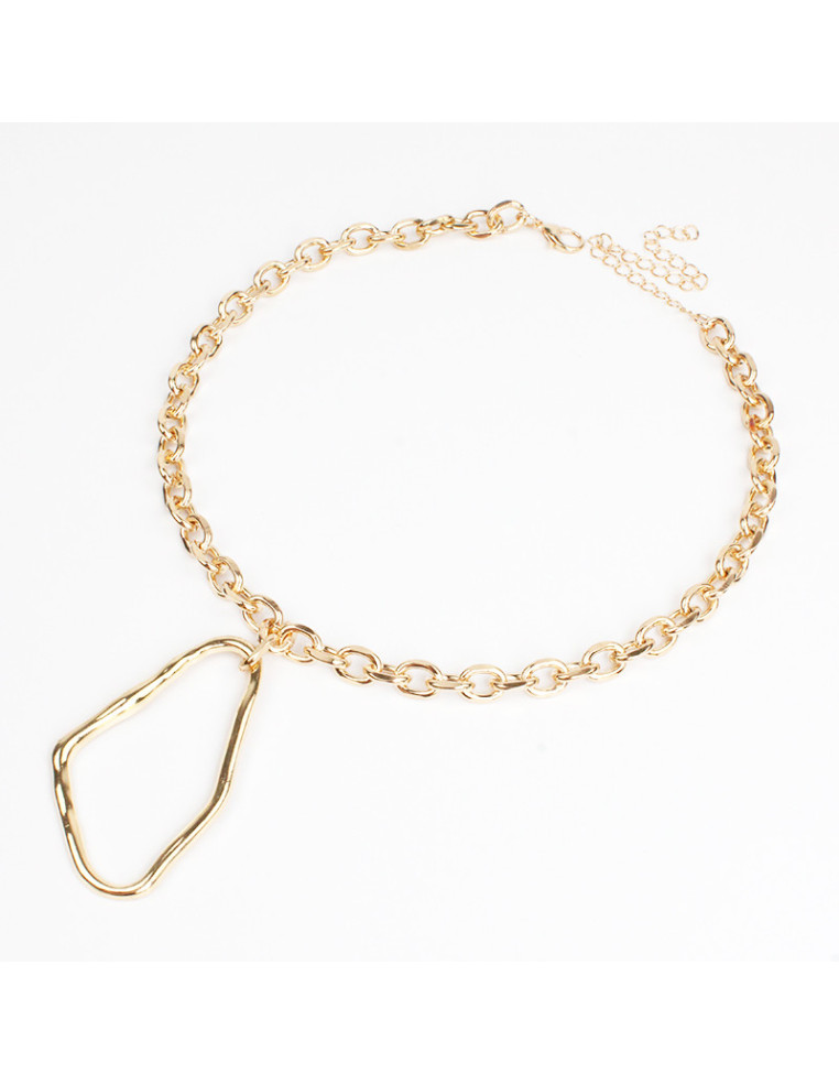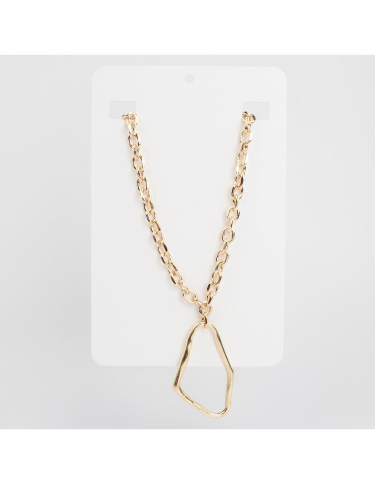 Collar largo de cadena con dije en forma orgánica.