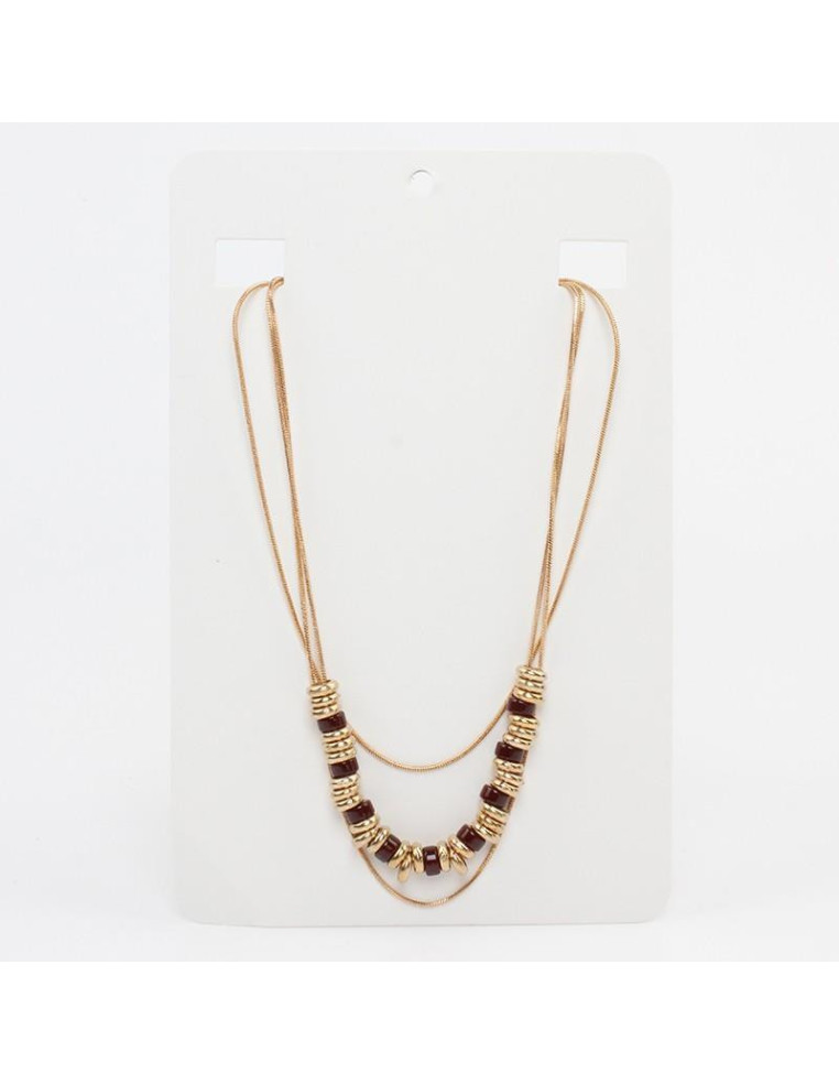 Collar de triple cadenas con cuentas de vidrio y separadores de CCB dorados.
