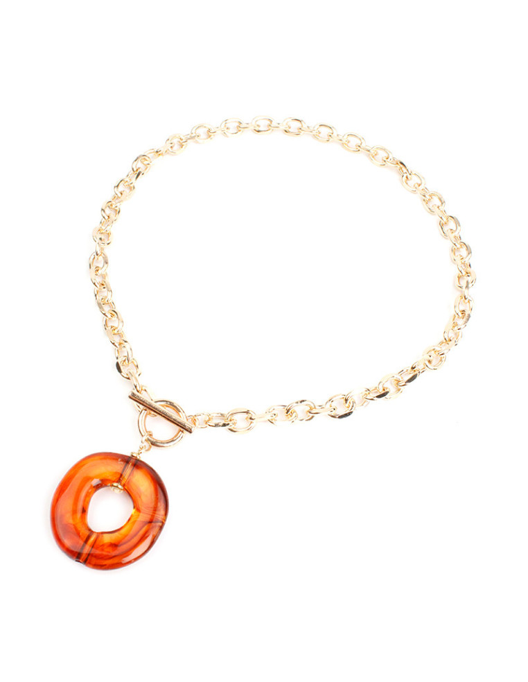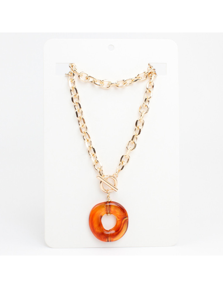 Collar de cadenas con dije de acrílico y cierre marinero. Medida: 43cm de largo.