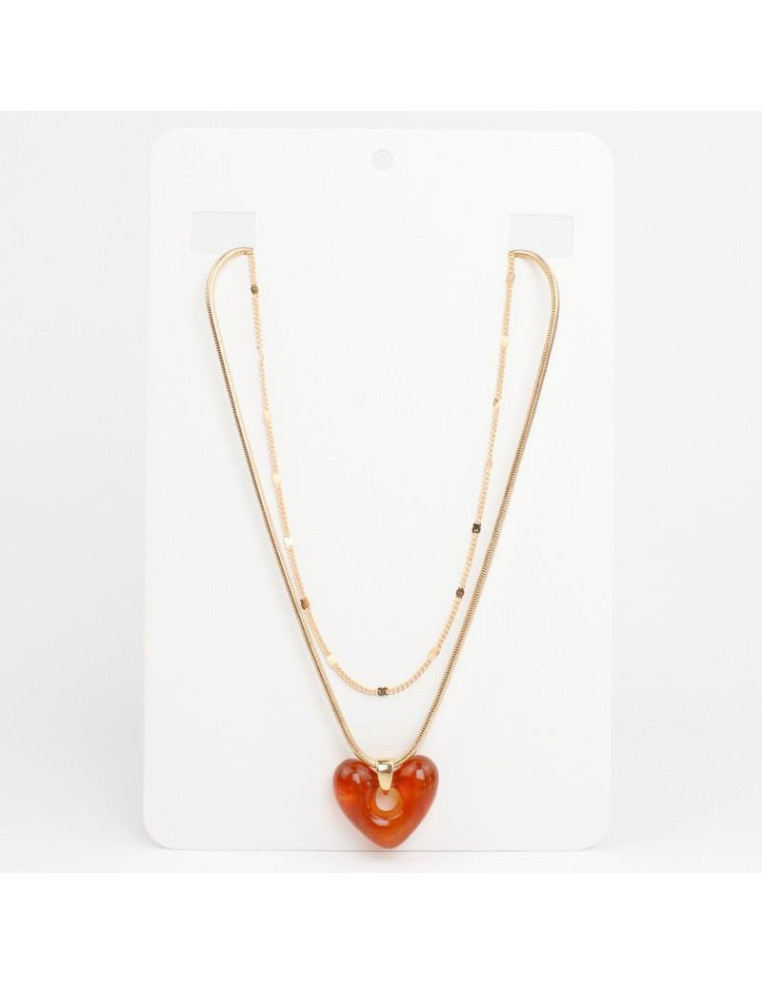 Collar de doble cadenas con dije de acrílico con forma de corazón.Medidas: 37cm y 42cm de largo, ajustable con cadena de enganche de 10cm.