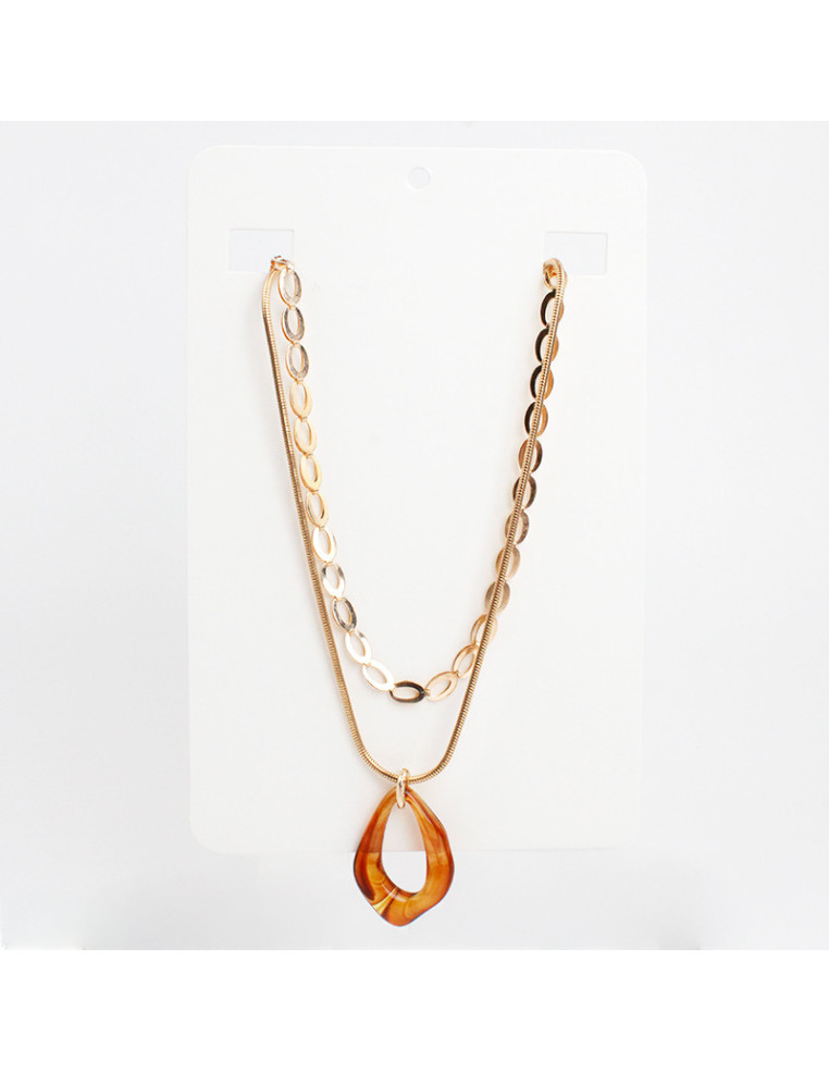 Collar de cadenas, de eslabones con diseño diferenciado, con dije de acrílico orgánico.