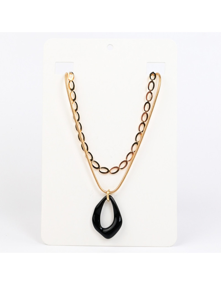 Collar de cadenas, de eslabones con diseño diferenciado, con dije de acrílico orgánico.