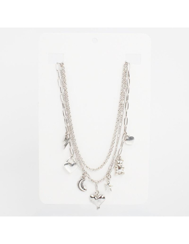 Collar multidijes de triple cadenas y charms de fundición níquel.