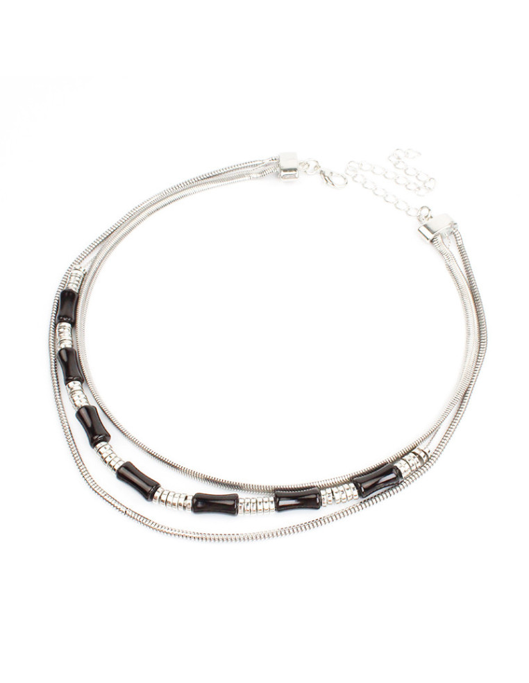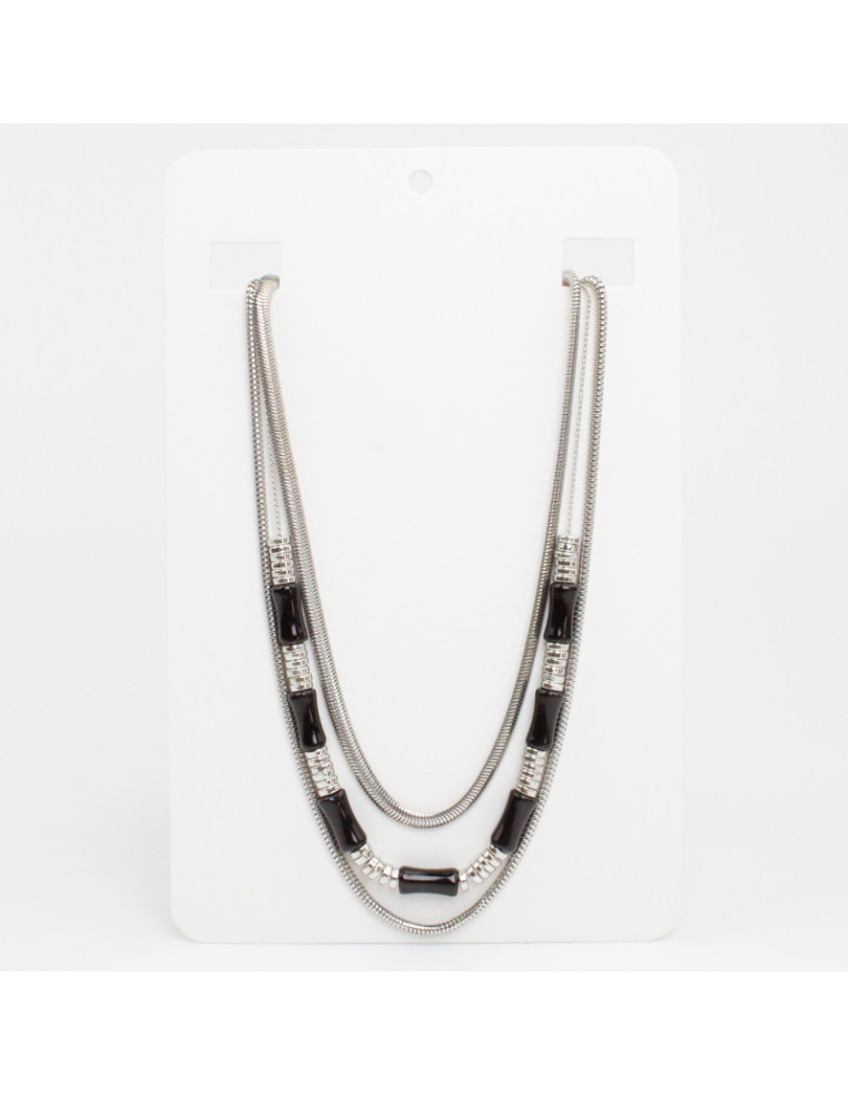 Collar de triple cadena con cuentas de vidrio y pasantes de CCB níquel.