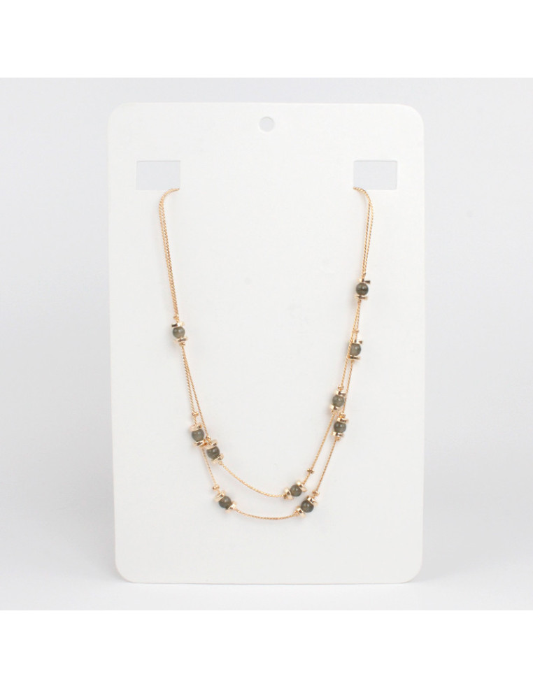Collar de doble cadenas con bolitas y piezas de CCB enhebradas.