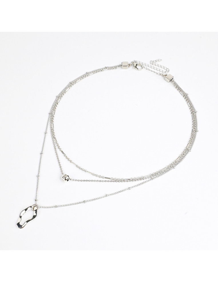 Collar de triple cadenas de diseños diferenciados y dijes de fundición orgánicos.