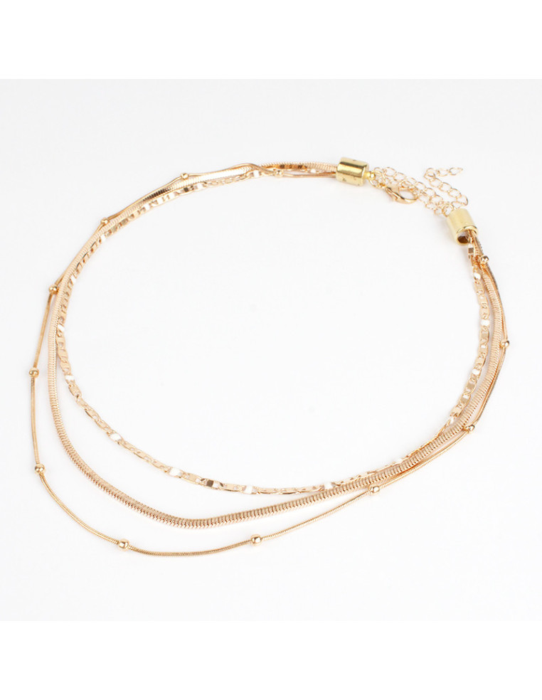 Collar de triple cadenas de diseños diferentes una de ellas con eslabones pintados.