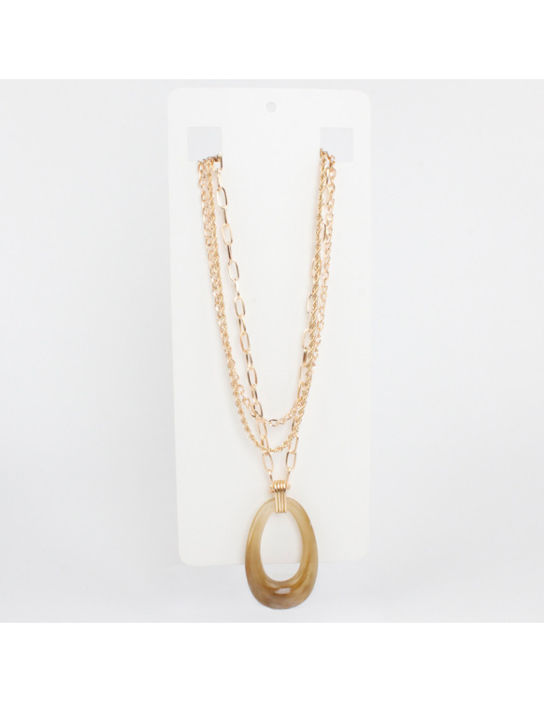 Collar con triple caída de cadenas diferenciadas intervenido con drops especiales y dije exclusivo de acrílico.