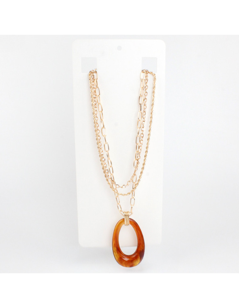 Collar con triple caída de cadenas diferenciadas intervenido con drops especiales y dije exclusivo de acrílico.