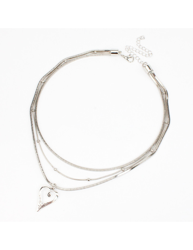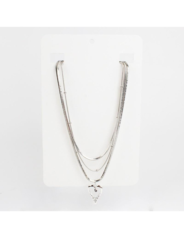 Collar de triple cadenas de diseños distintos con dije de fundición níquel.