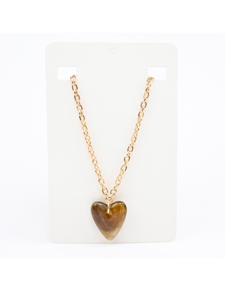 Collar de cadena con dije de acrílico con forma de corazón marmolado.