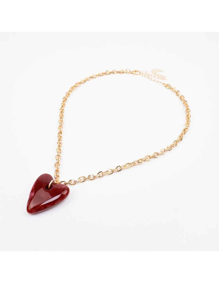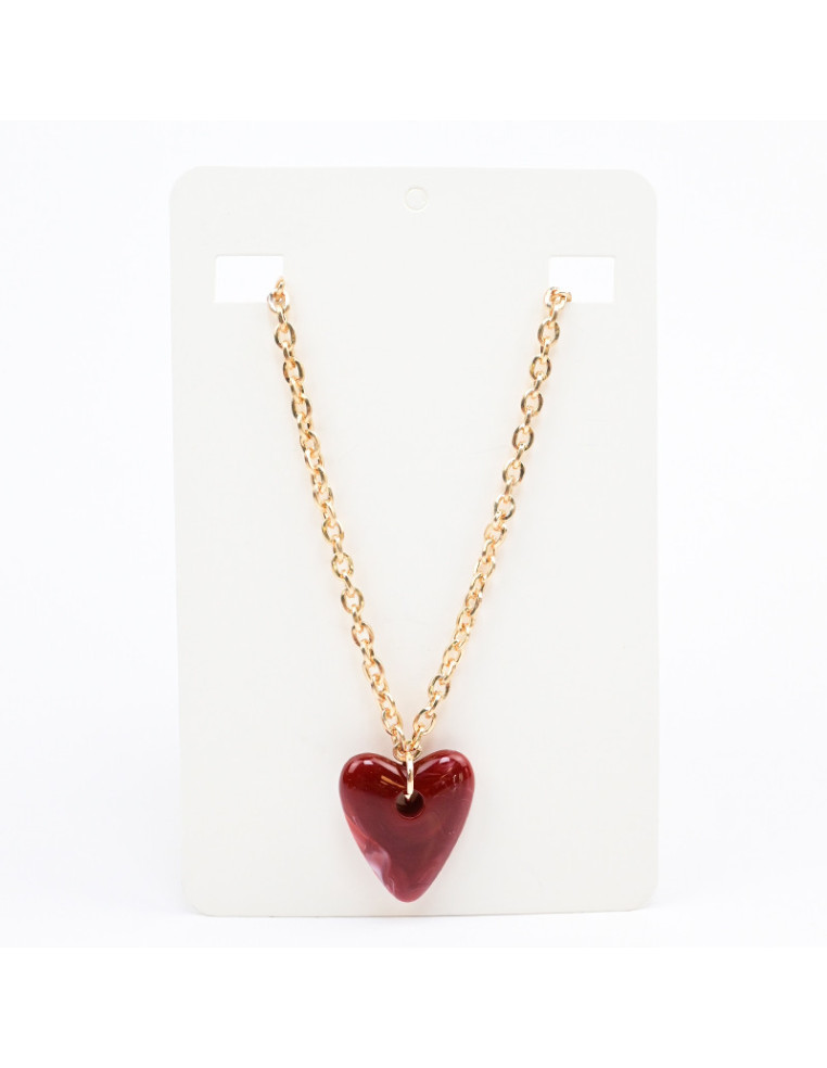 Collar de cadena con dije de acrílico con forma de corazón marmolado. Medida: 41cm de largo, ajustable con cadena de enganche de 10cm.