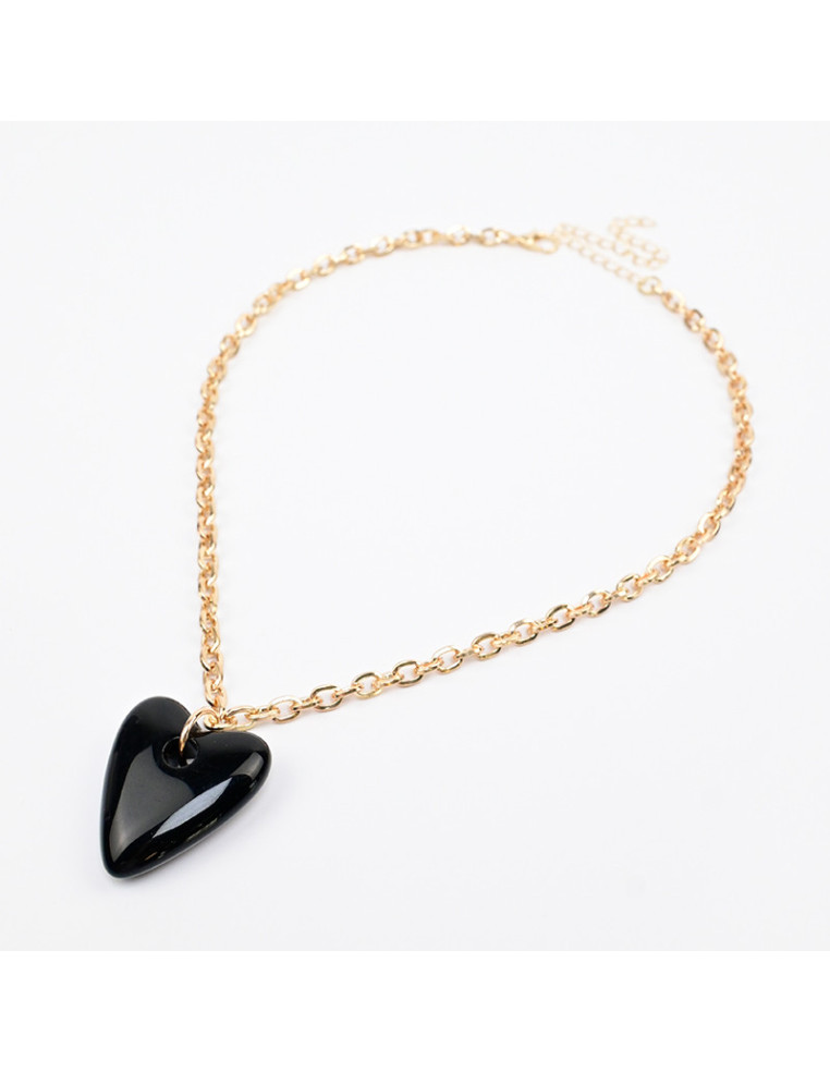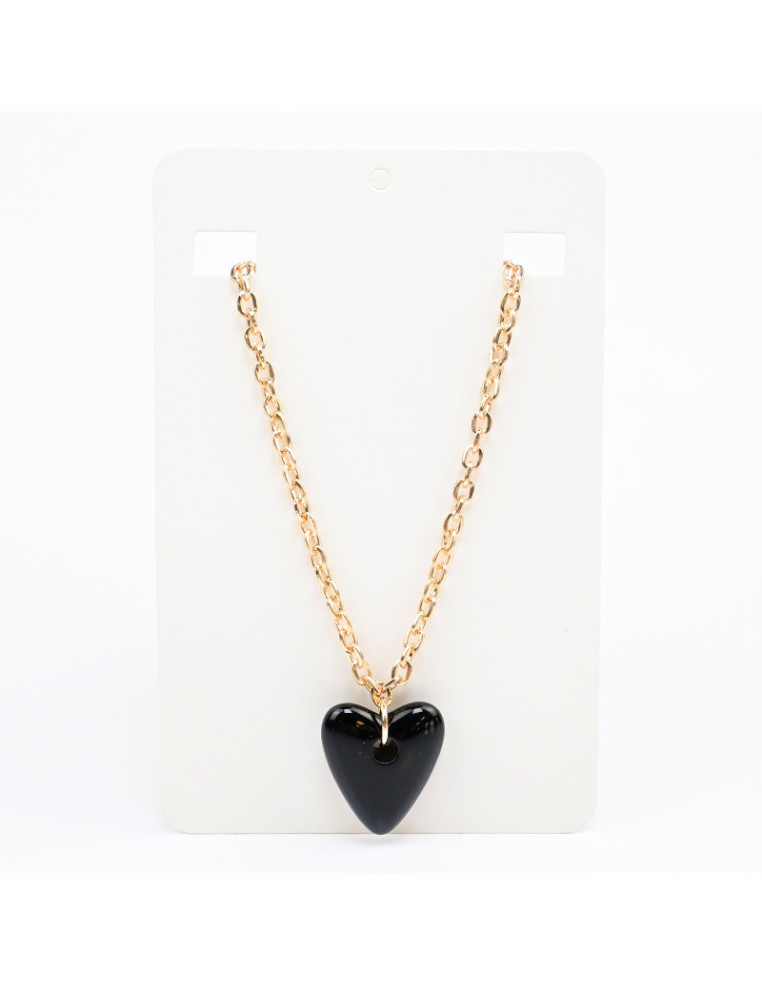 Collar de cadena con dije de acrílico con forma de corazón marmolado.