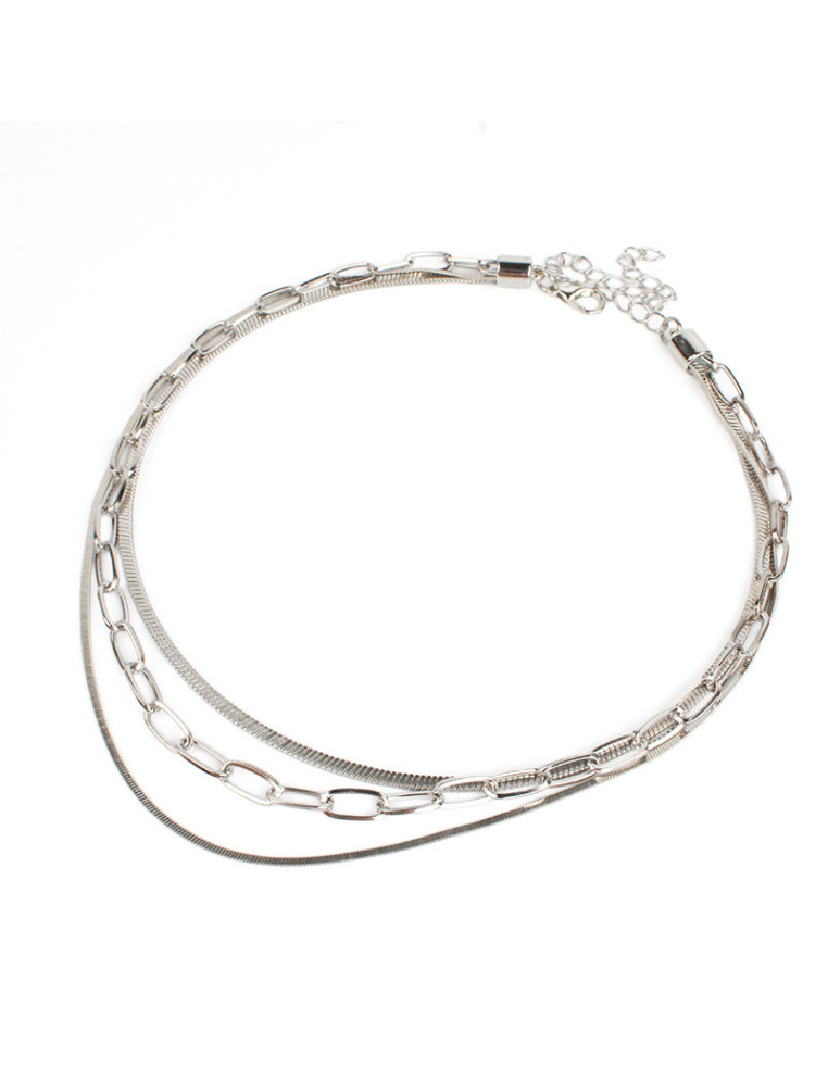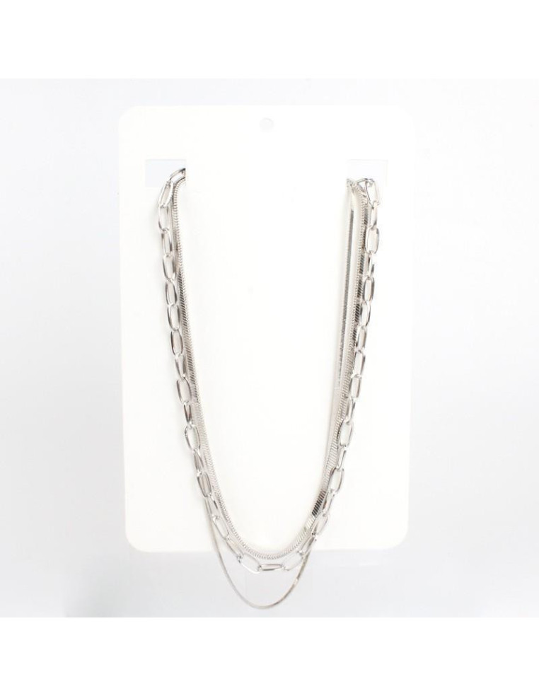Collar de triple cadenas de diseños diferenciados. Medidas: 37cm, 39cm y 41cm de largo, ajustable con cadena de enganche de 10cm.