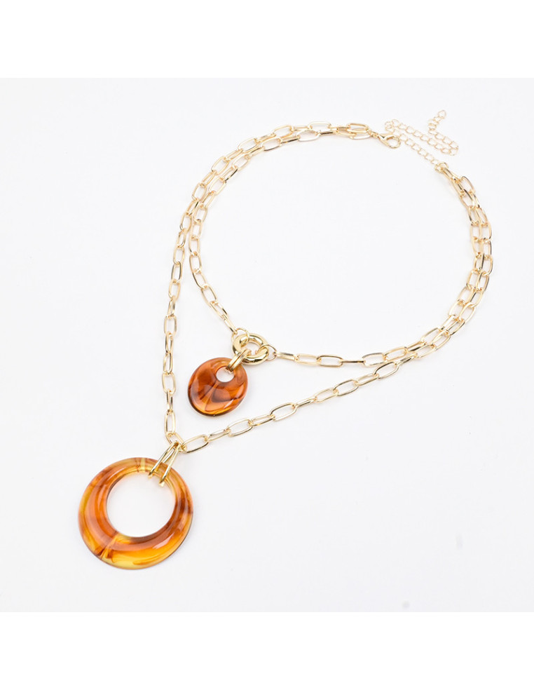 Collar de doble cadena con dijes boho de acrílico marmolado.
