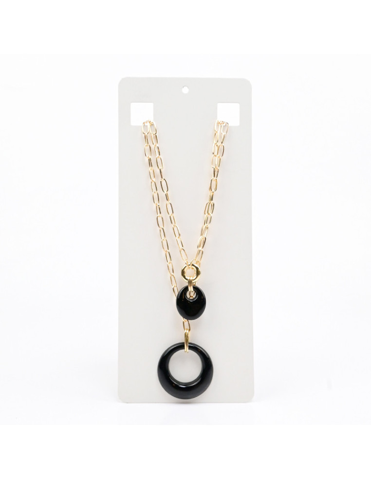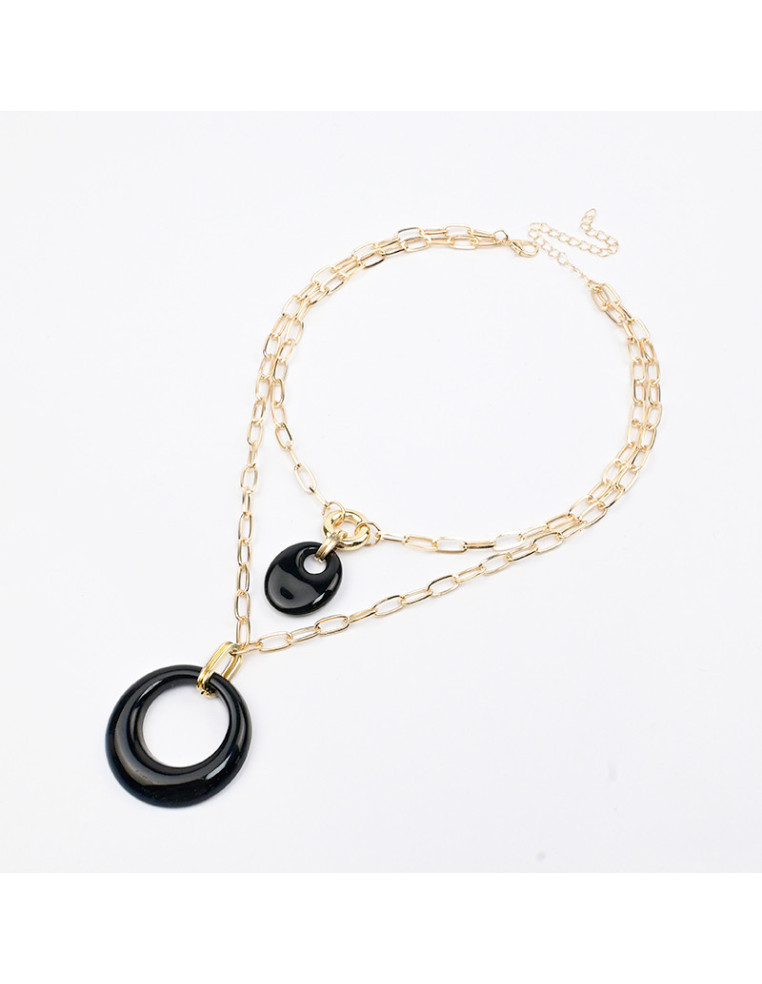 Collar de doble cadena con dijes boho de acrílico marmolado. Medidas: 38cm y 46cm de largo, ajustable con cadena de enganche de 10cm.