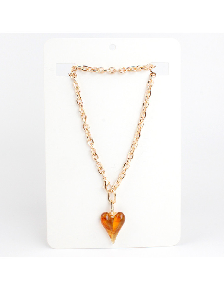 Collar de cadena, con dije de acrílico con forma de corazón.