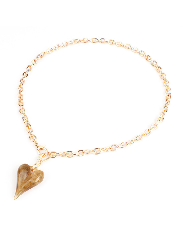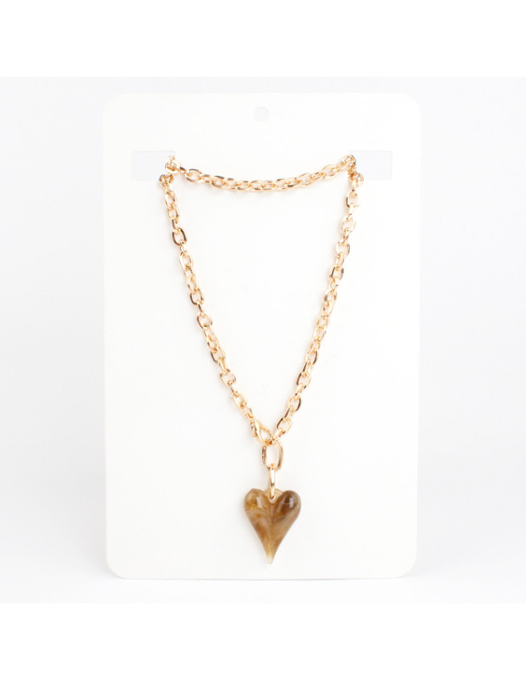 Collar de cadena, con dije de acrílico con forma de corazón.