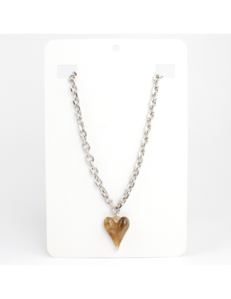 Collar de cadena, con dije de acrílico con forma de corazón. Medidas: 42cm de largo, ajustable con cadena de enganche de 10cm.