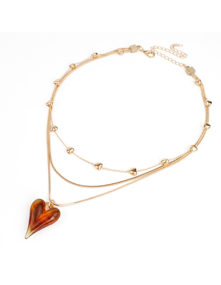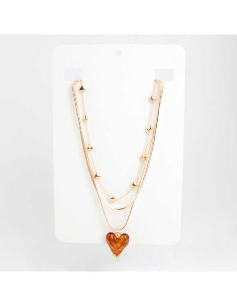 Collar de triple cadena, una de ellas de eslabones diferenciados, con dije de acrílico con forma de corazón.