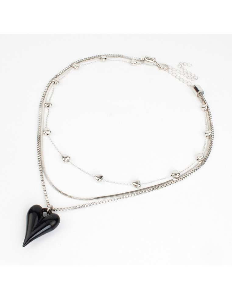 Collar de triple cadena, una de ellas de eslabones diferenciados, con dije de acrílico con forma de corazón.