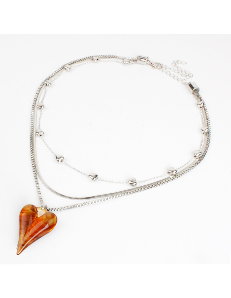 Collar de triple cadena, una de ellas de eslabones diferenciados, con dije de acrílico con forma de corazón.