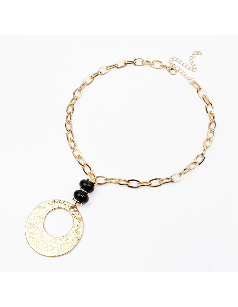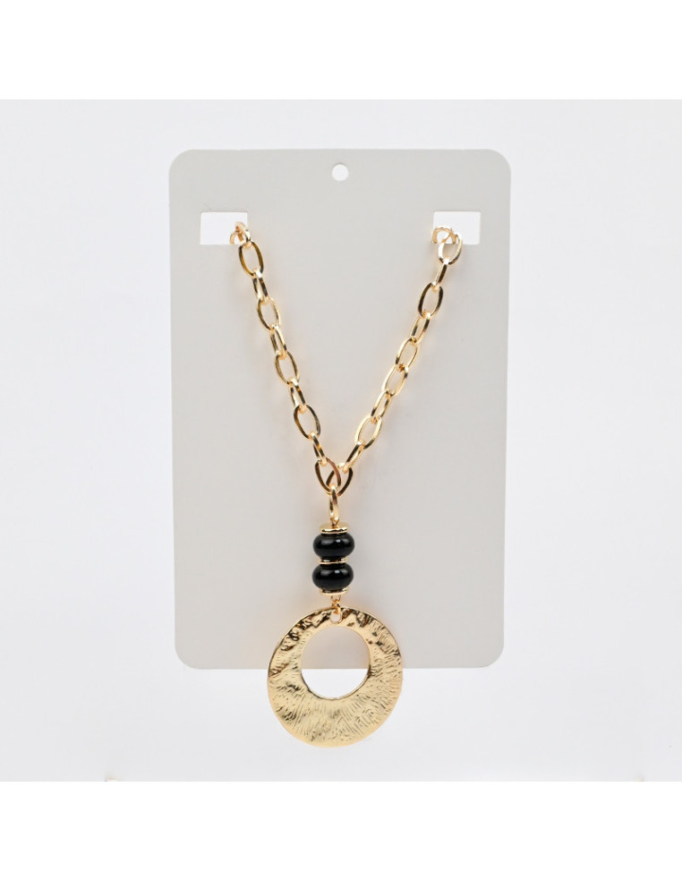Collar de cadenas con piezas de acrílico y dije de fundición boho.