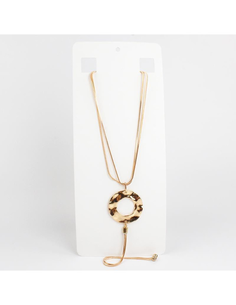 Collar de doble caída de cadenas diferenciadas intervenidas con dije exclusivo y terminales de CCB. Medidas del collar 54cm más largo ajustable con cadena de enganche de 10cm.