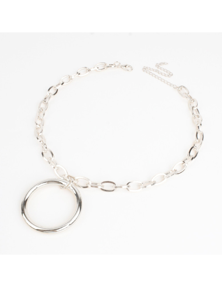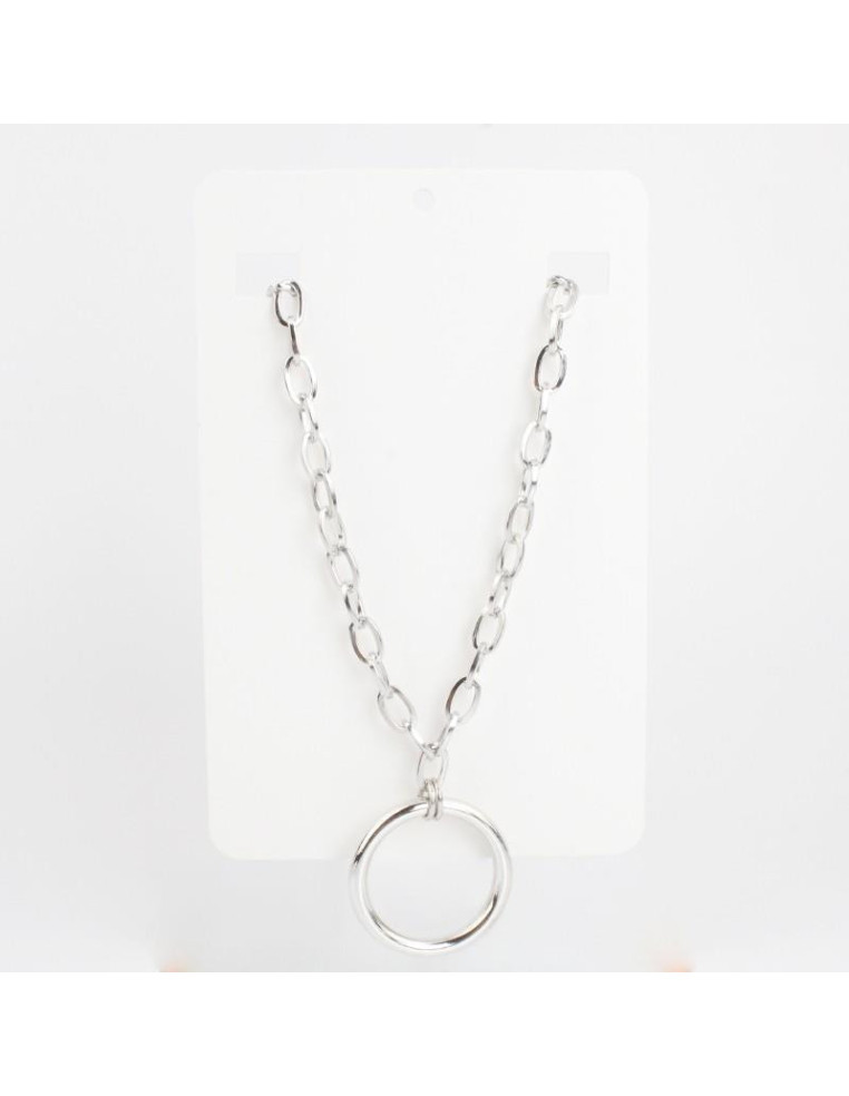 Collar de cadena níquel, con dije de CCB circular. Medidas: 36cm de largo, ajustable con cadena de enganche de 10cm.