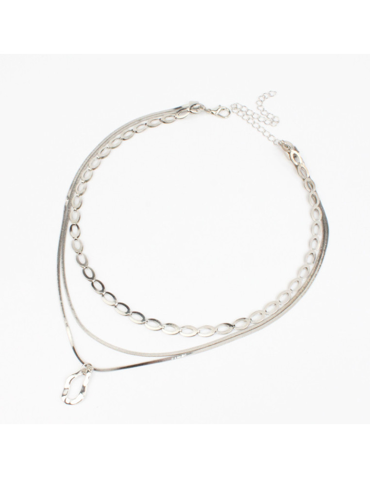Collar de triple cadena, de eslabones diferenciados con dije de fundición níquel.
