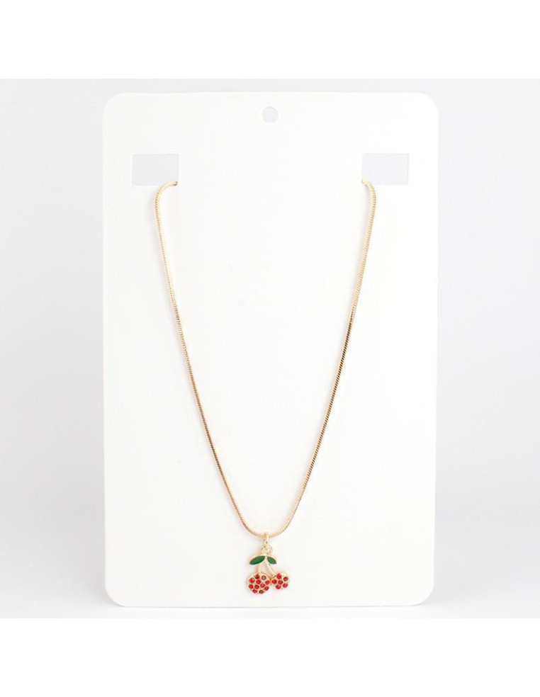 Collar de cadena y dije de strass dorado con forma de cereza.