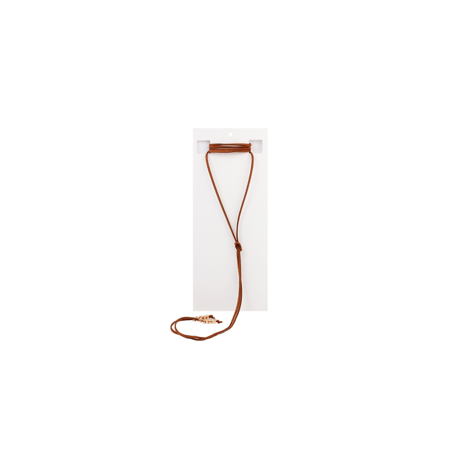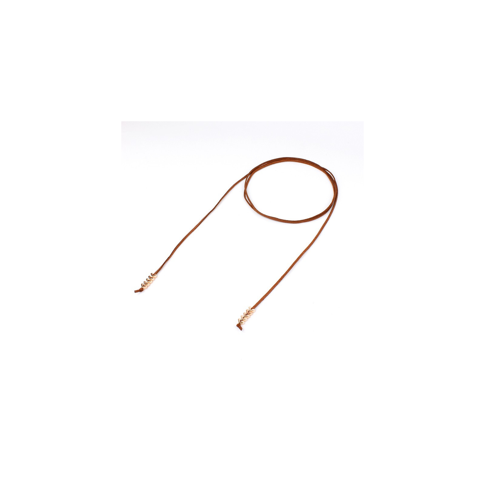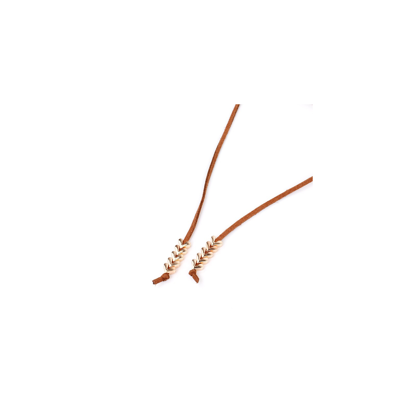 Collar corbatero de gamuza de múltiples vueltas con terminaciones en punteras en forma de corazón dorados.
