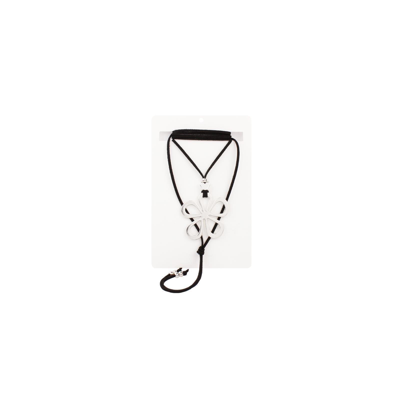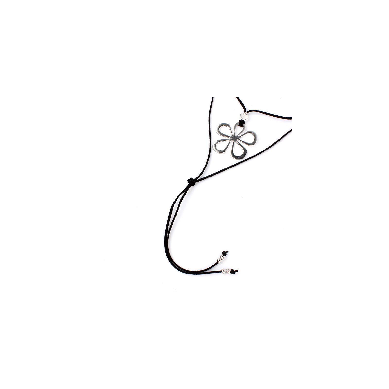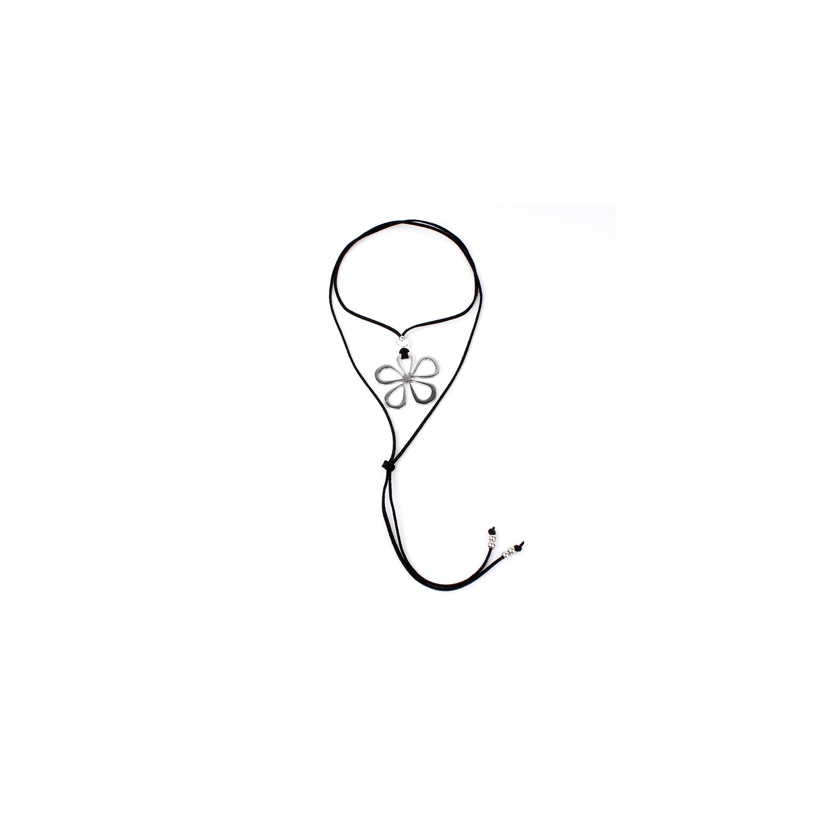 Collar de múltiples vueltas de gamuza con dije exclusivo de gran tamaño en forma de flor, piezas pasantes y terminales en punteras.