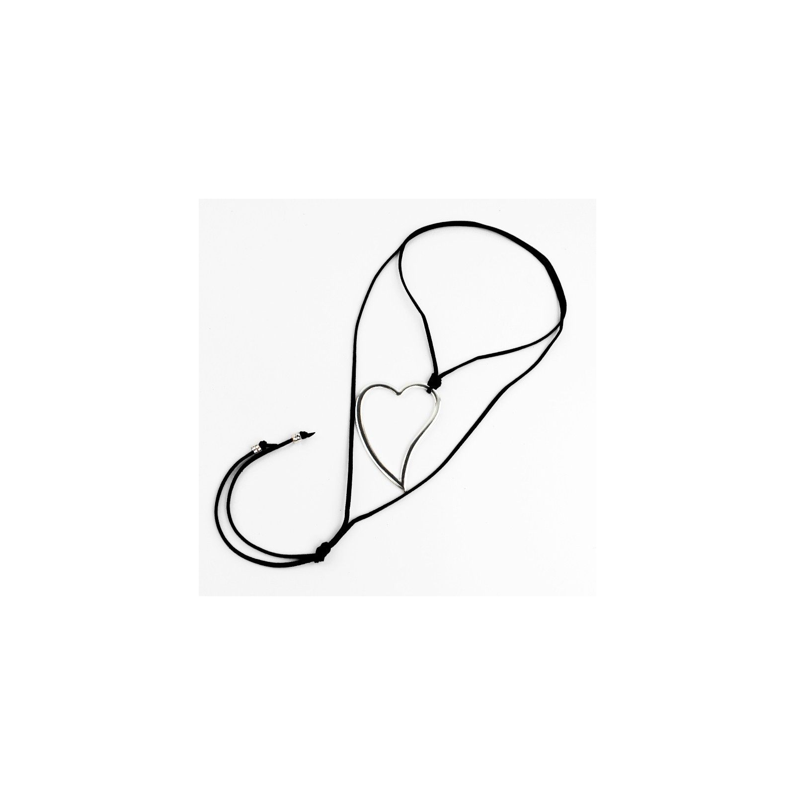 Collar de gamuza de múltiples vueltas, con dije exclusivo de fundición con forma de corazón y terminales en punteras.