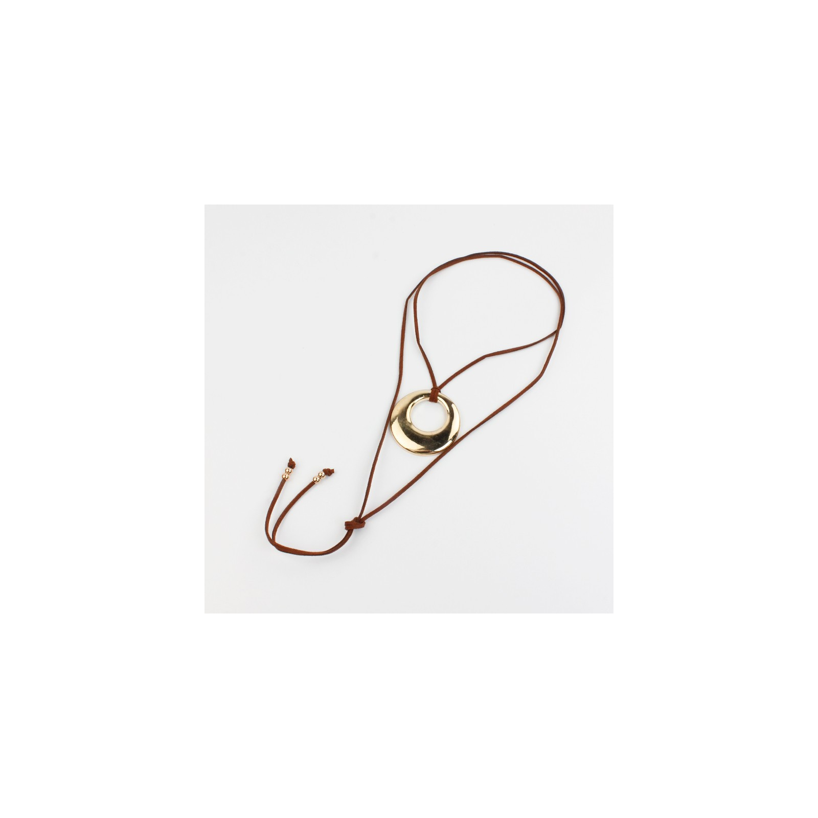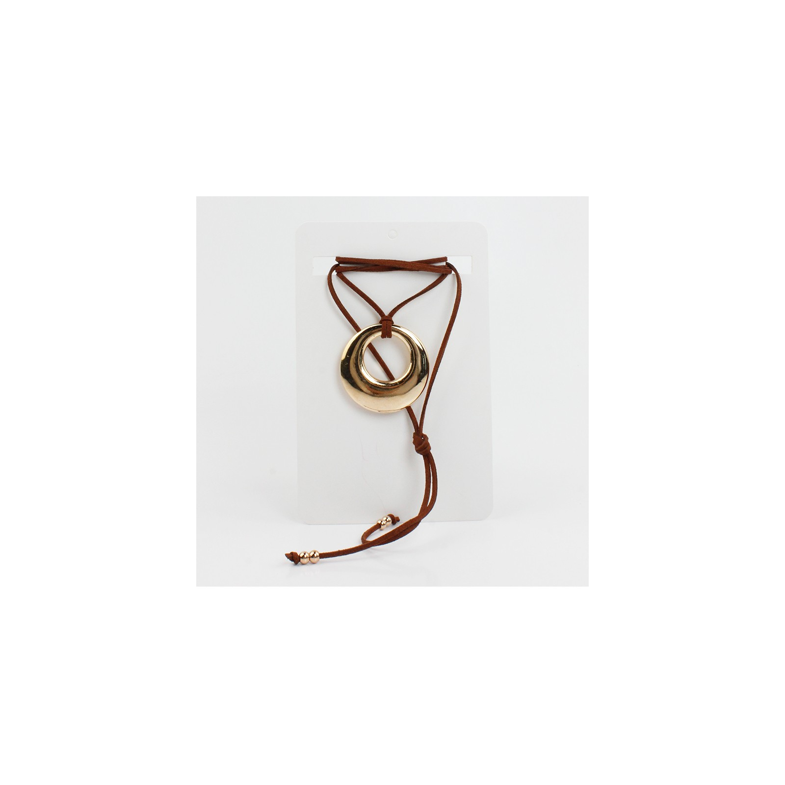 Collar de gamuza de múltiples vueltas, con dije exclusivo de fundición circular y terminales en punteras.