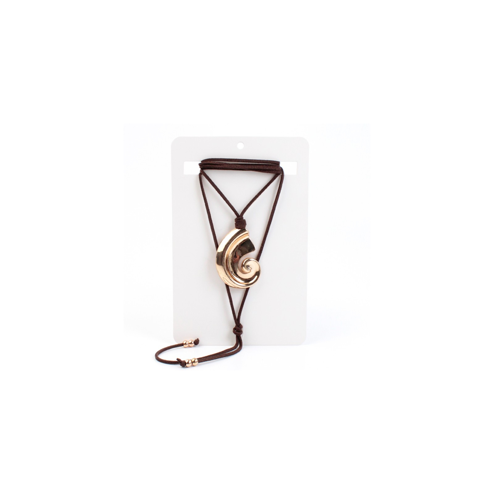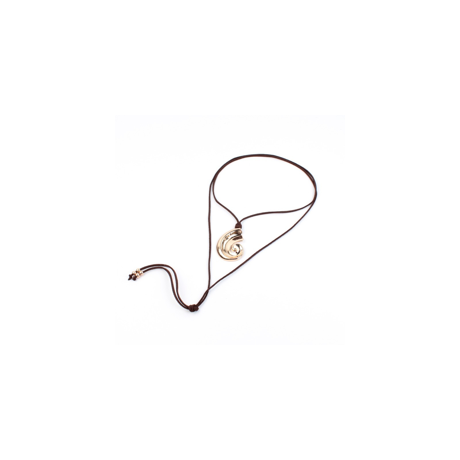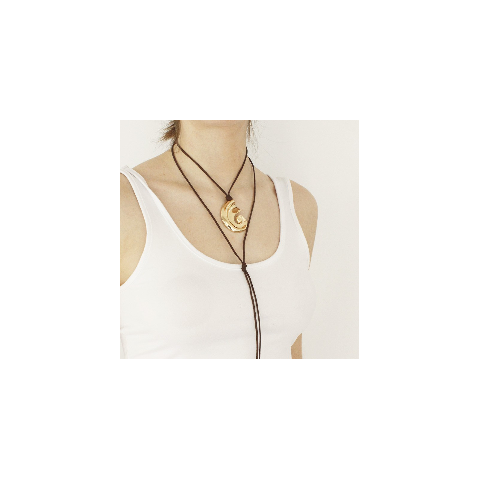 Collar de gamuza de múltiples vueltas, con dije exclusivo dorado y terminales en punteras.