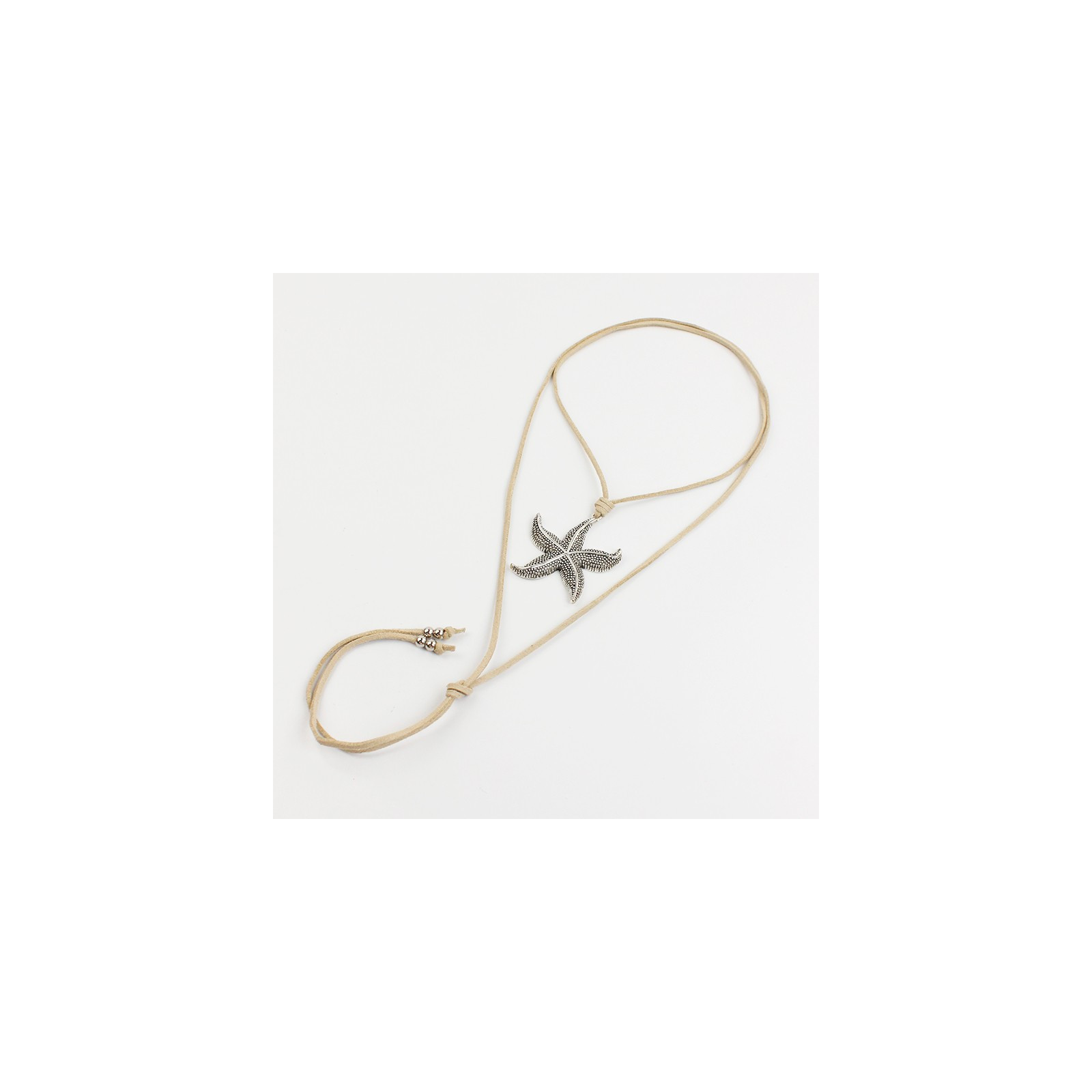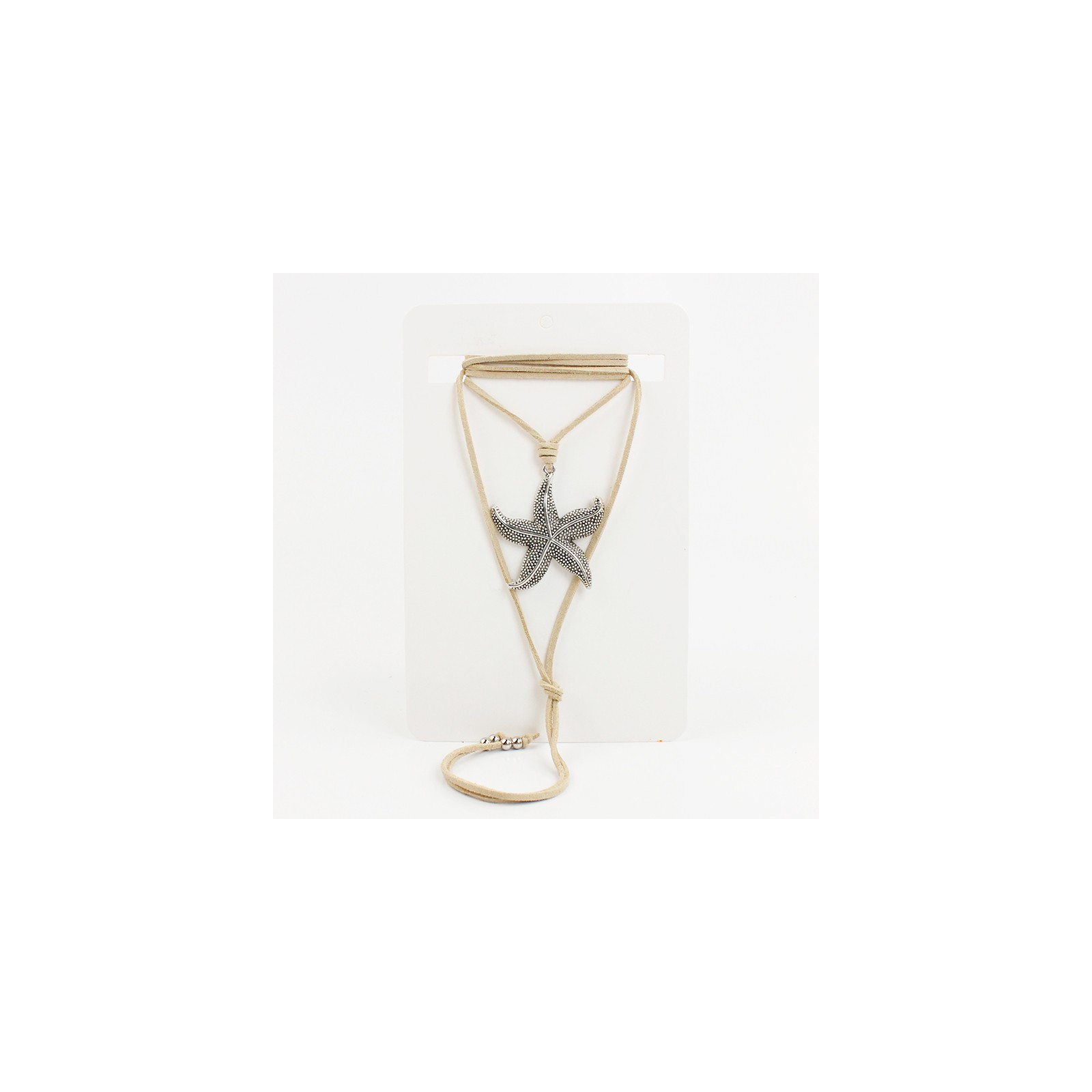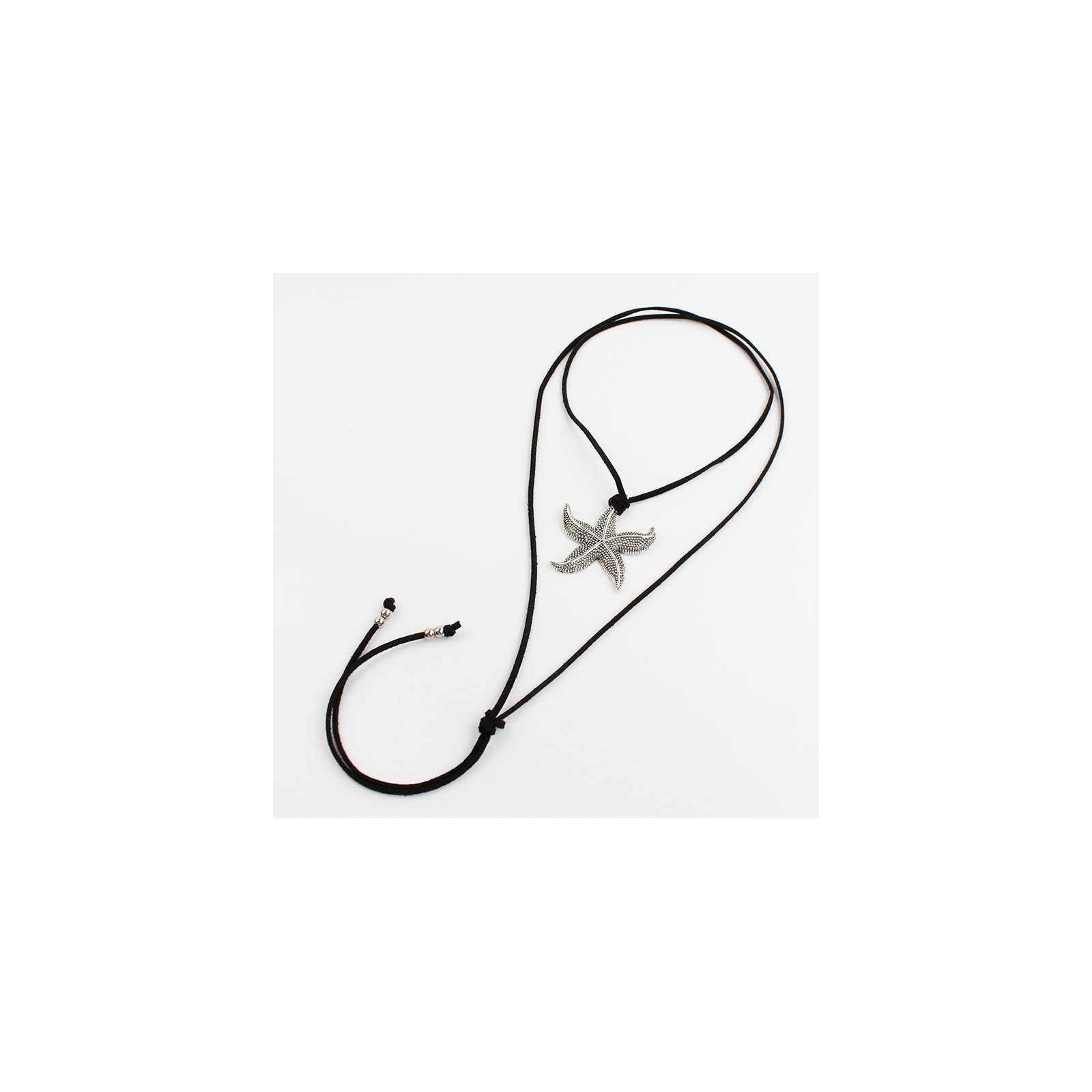 Collar de gamuza de múltiples vueltas, con dije exclusivo de fundición con forma de estrella marina y terminales en punteras.