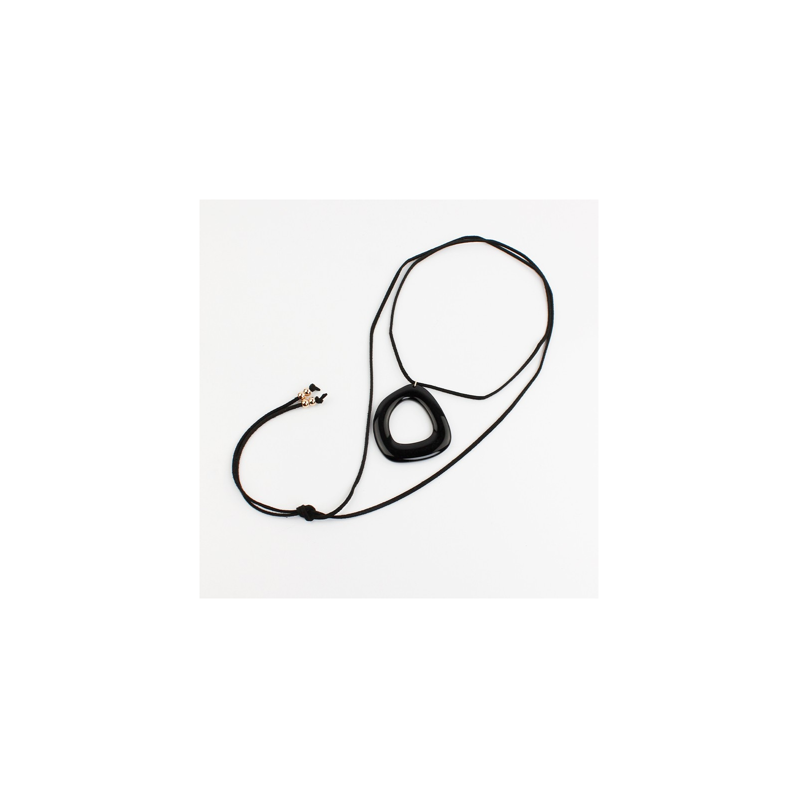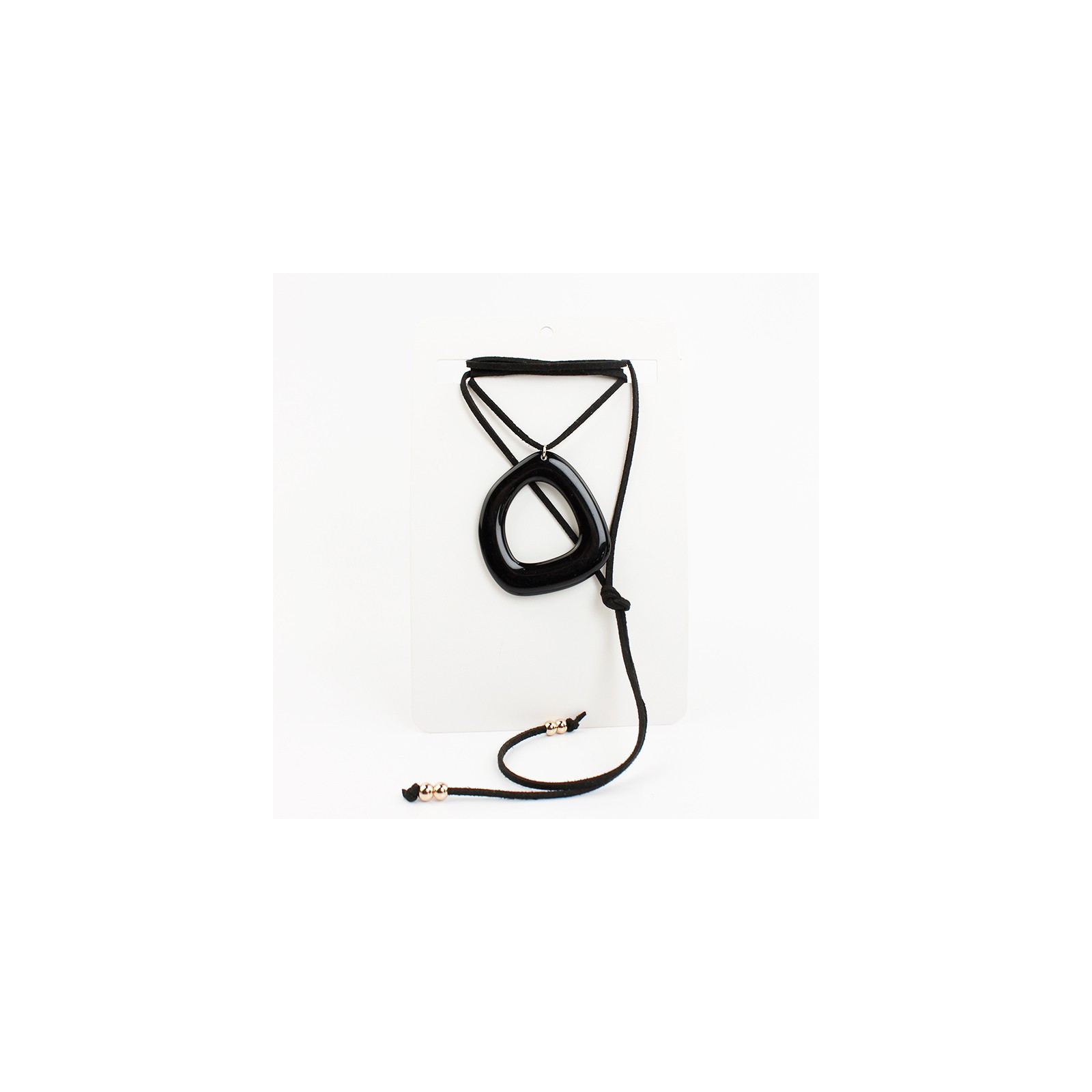Collar de gamuza de múltiples vueltas, con dije exclusivo de acrílico de forma orgánica y terminales en punteras.