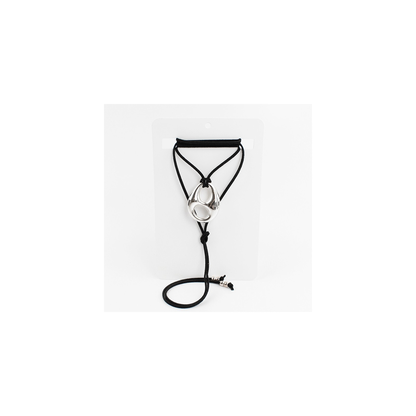 Collar de gamuza de múltiples vueltas, con dije exclusivo de CCB de forma orgánica y terminales en punteras.