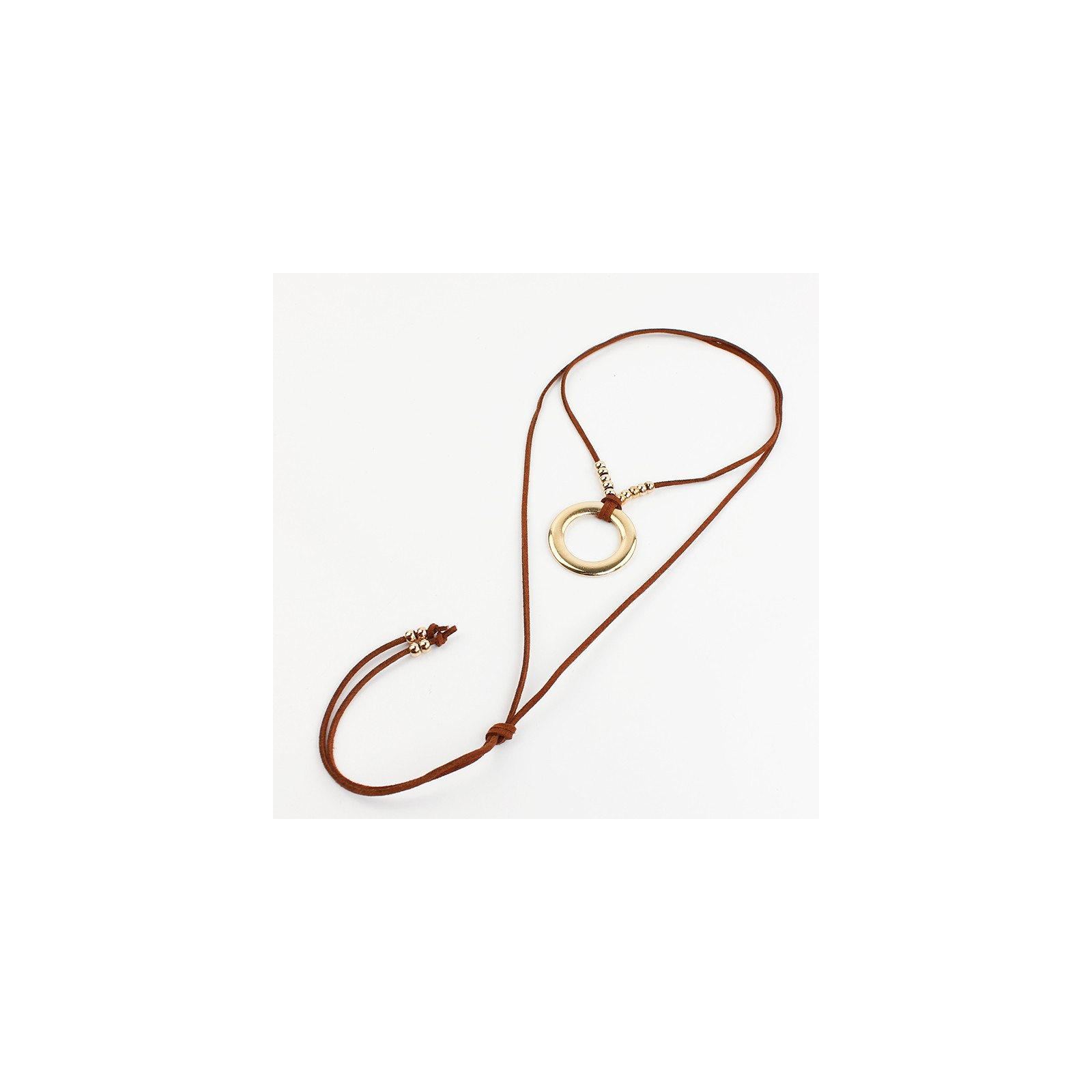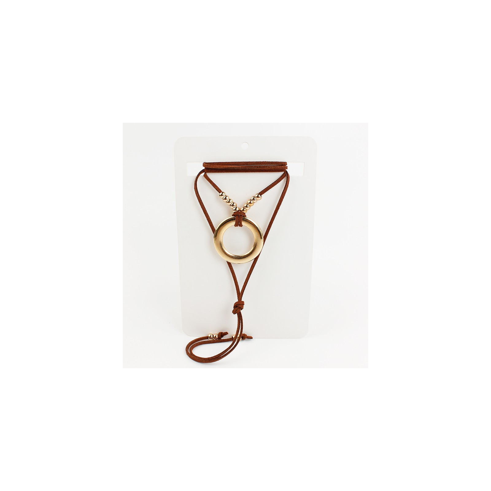 Collar de gamuza de múltiples vueltas, con dije exclusivo de CCB dorado y terminales en punteras.