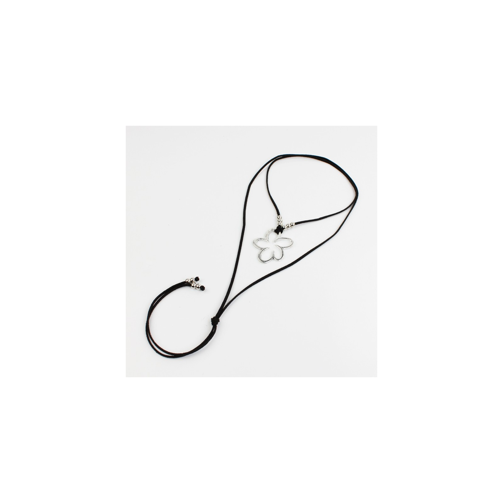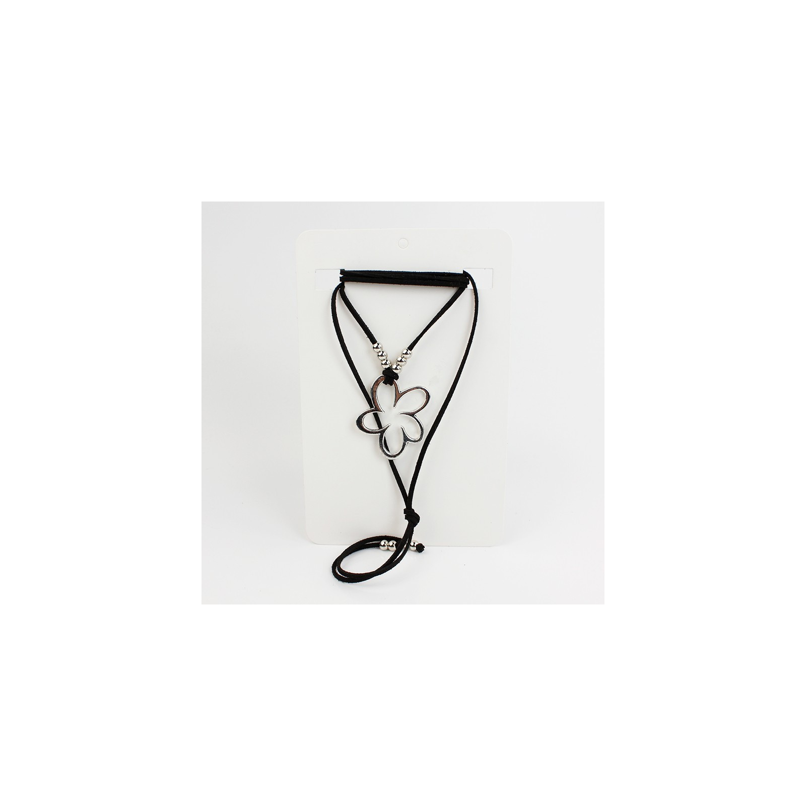 Collar de gamuza de múltiples vueltas, con dije exclusivo de fundición con forma de flor y terminales en punteras.