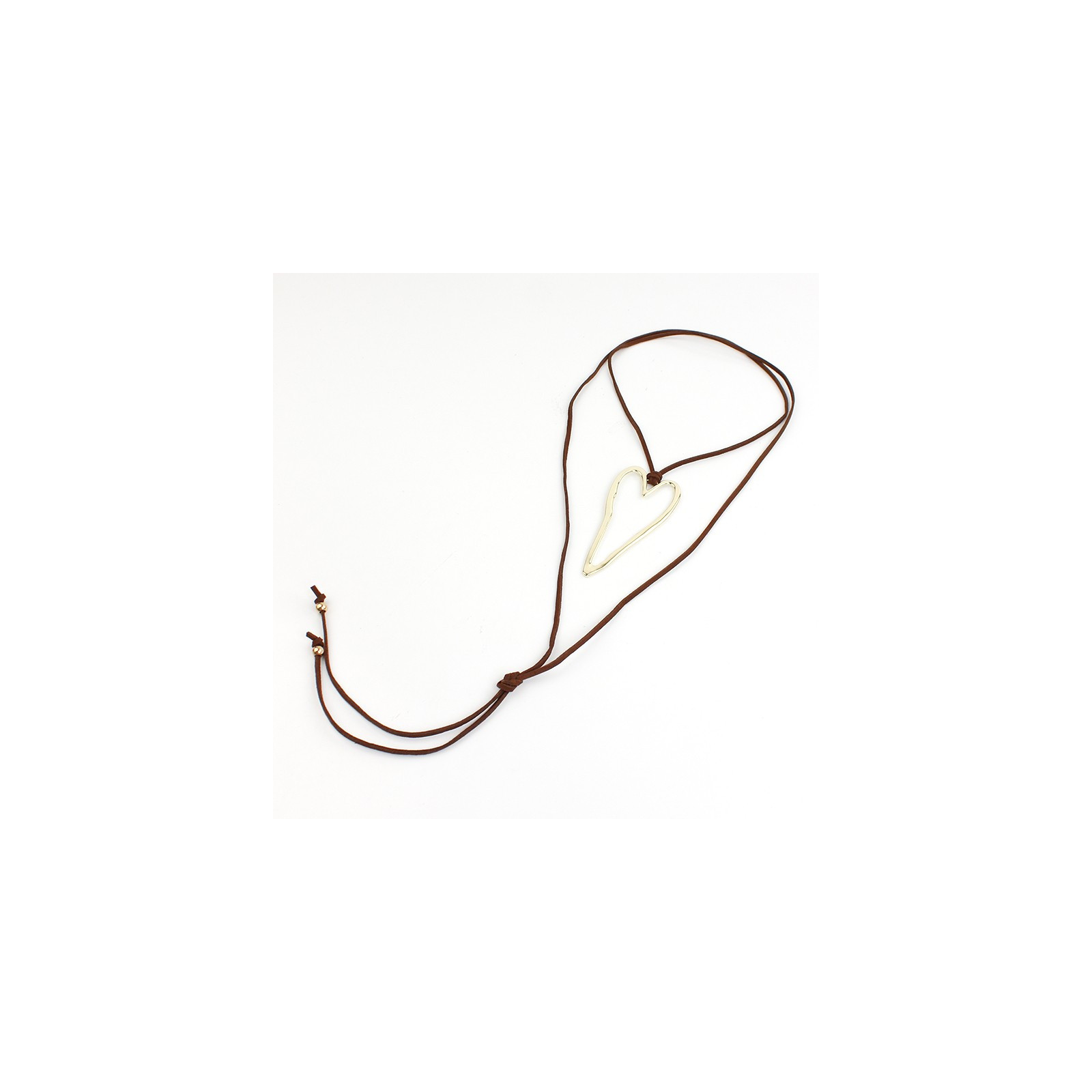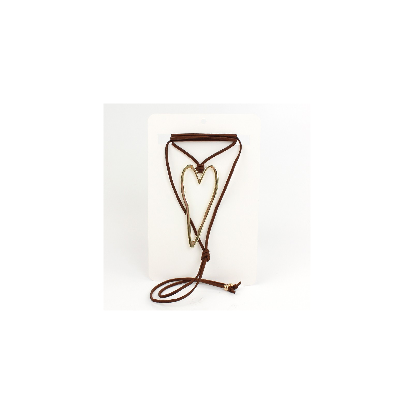 Collar de gamuza de múltiples vueltas, con dije exclusivo de fundición con forma de corazón y terminales en punteras.
