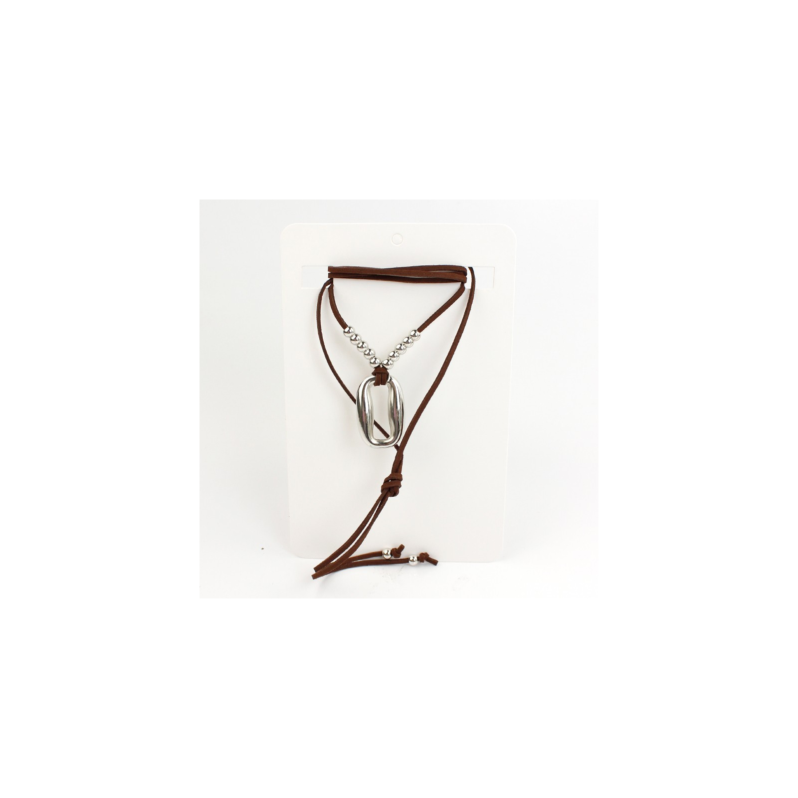 Collar de gamuza de múltiples vueltas, con dije exclusivo de CCB con forma orgánica y terminales en punteras.