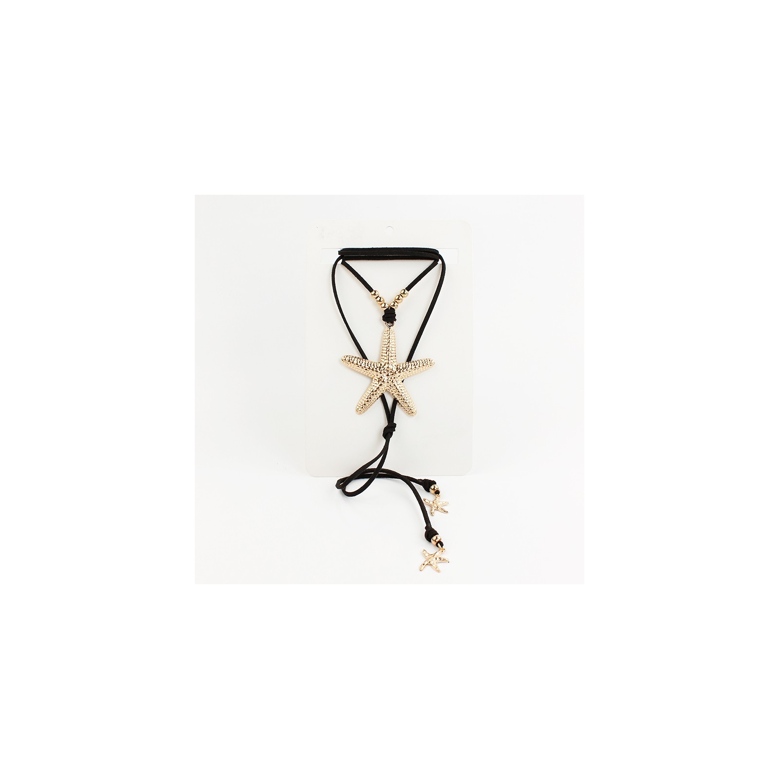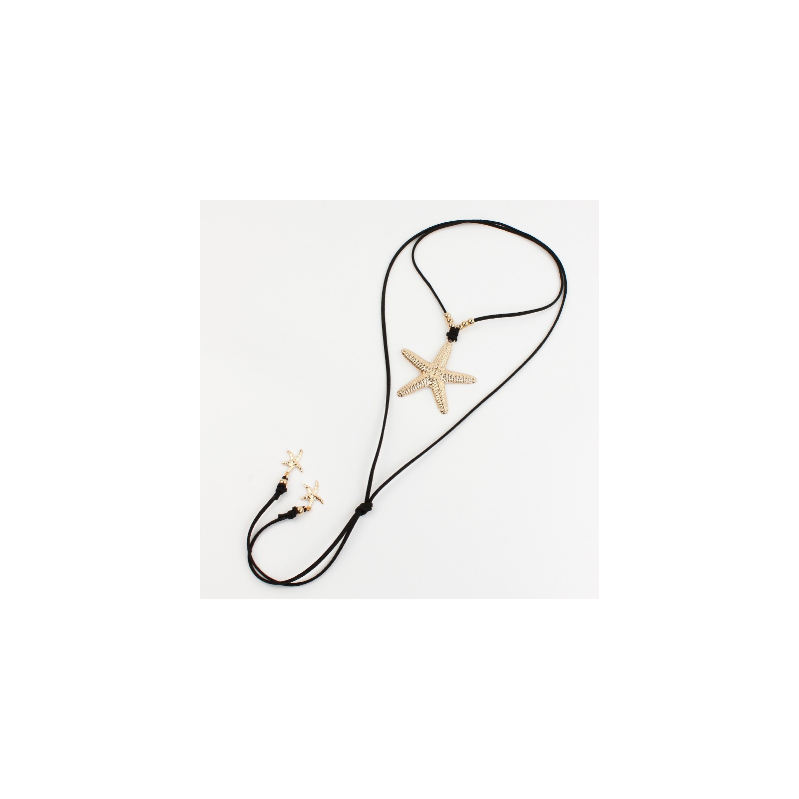 Collar de gamuza de múltiples vueltas, con dije exclusivo de fundición con forma de estrella de mar y dijes terminales en punteras.