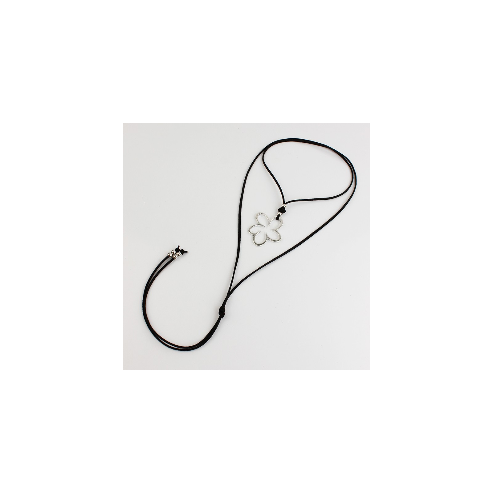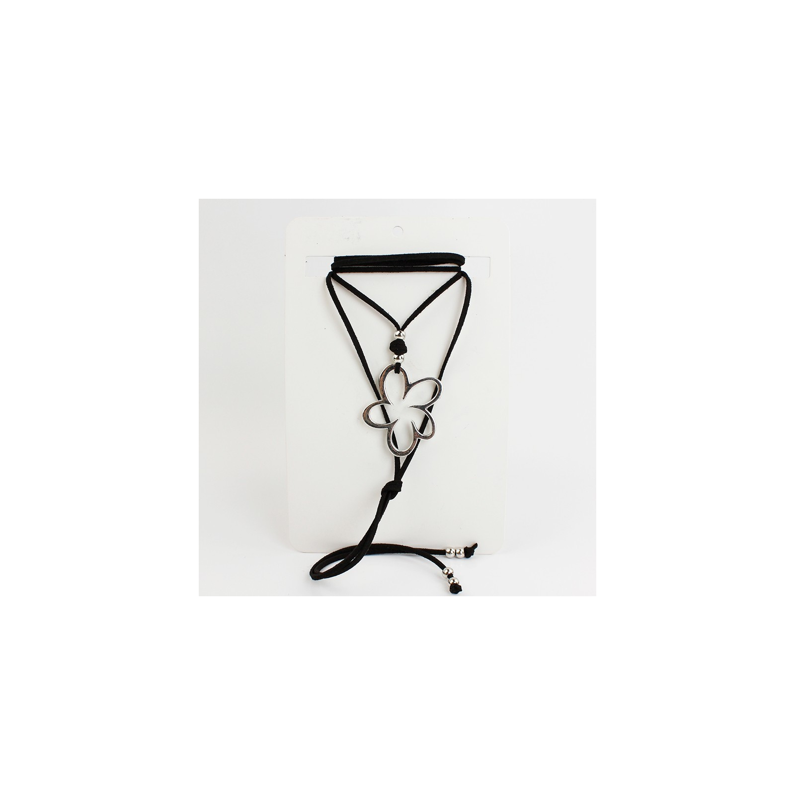 Collar de gamuza de múltiples vueltas, con dije exclusivo de fundición con forma de flor y terminales en punteras.