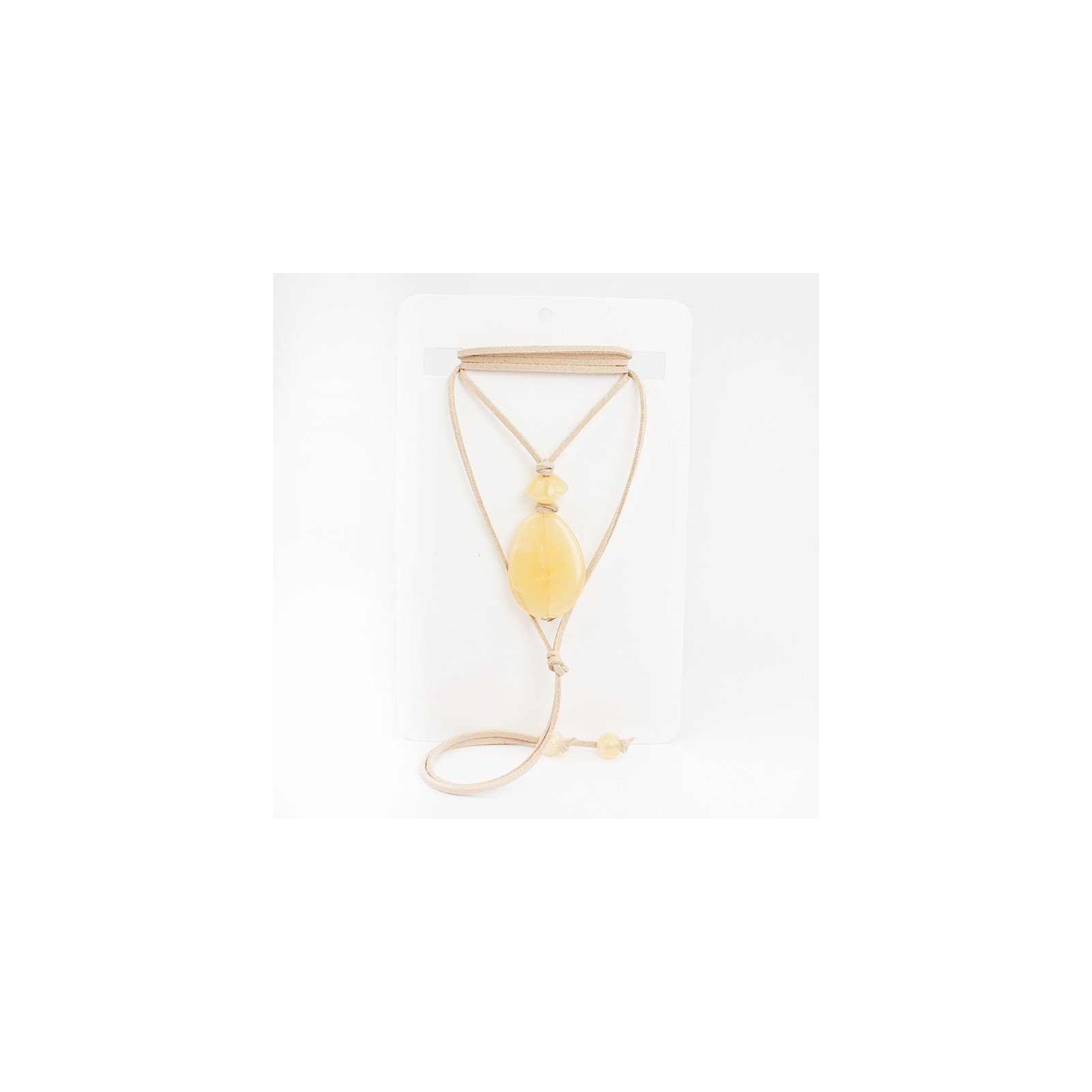 Collar de gamuza de múltiples vueltas, con dije exclusivo de acrílico y terminales en punteras.