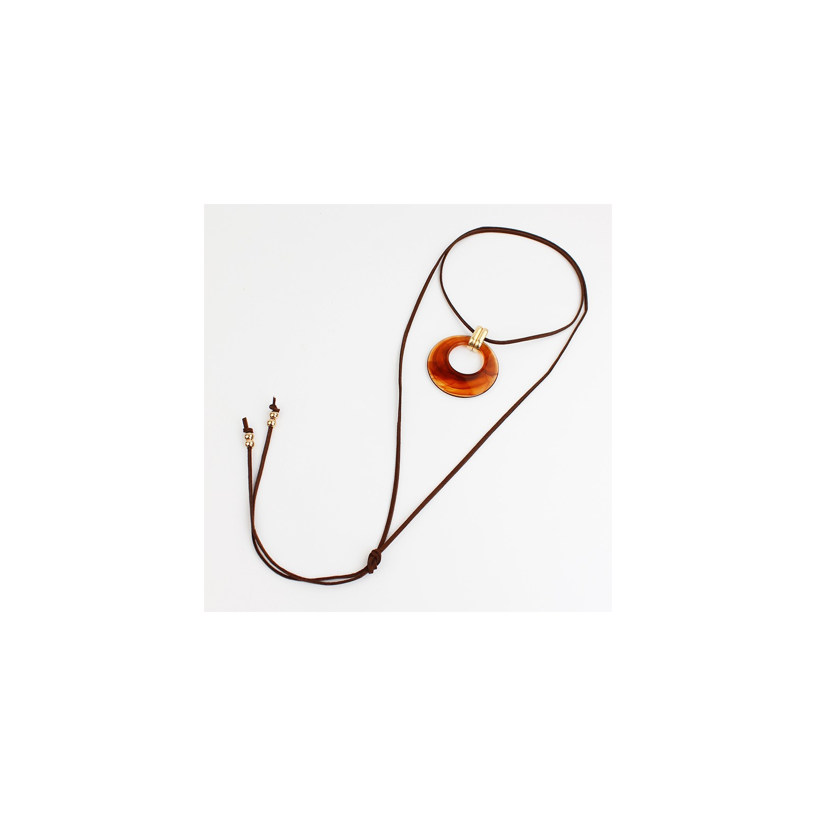 Collar de gamuza de múltiples vueltas, con dije exclusivo de acrílico y terminales en punteras.