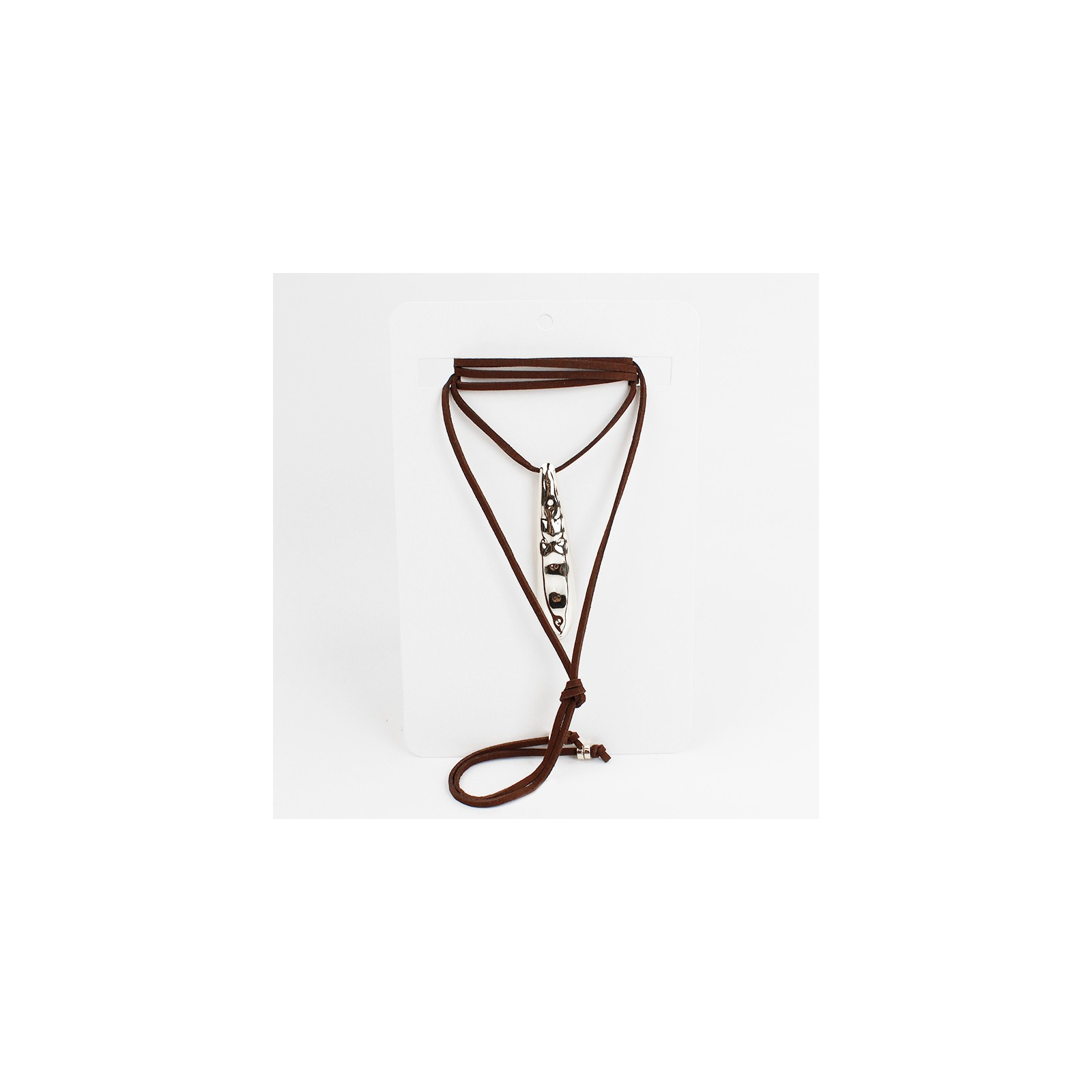 Collar de gamuza de múltiples vueltas, con dije exclusivo de metal níquel y terminales en punteras.