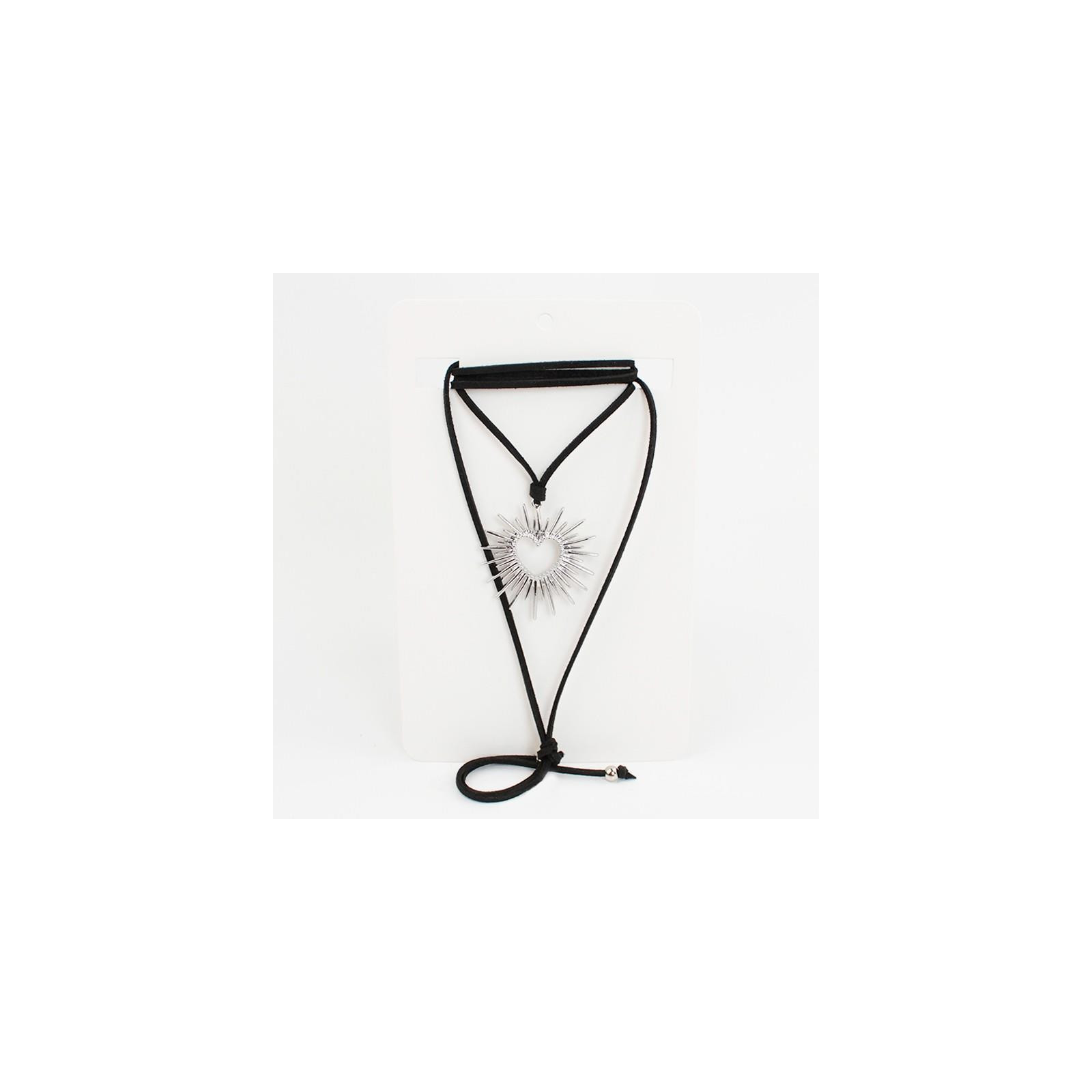 Collar de gamuza de múltiples vueltas, con dije exclusivo de fundición con forma de corazón y terminales en punteras.