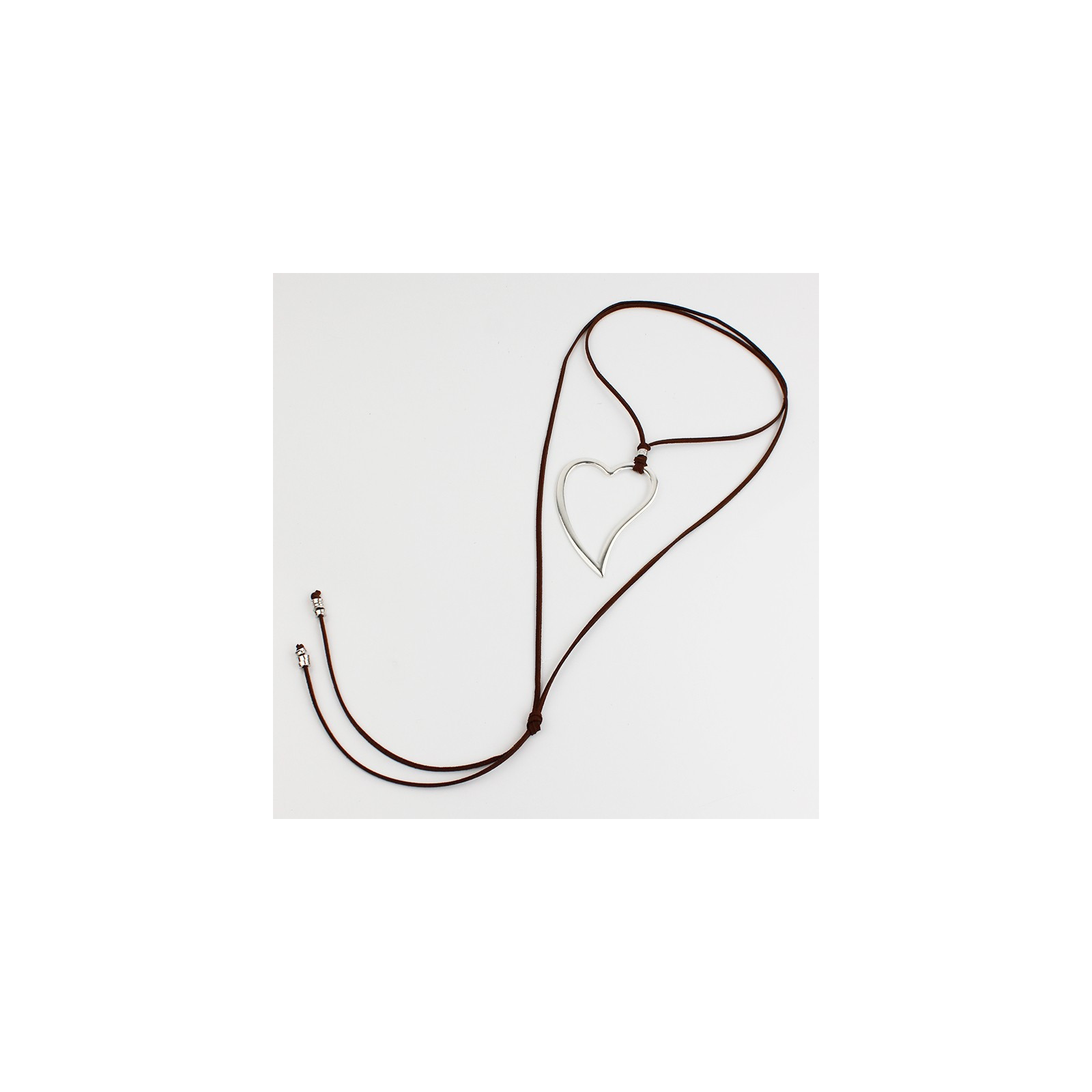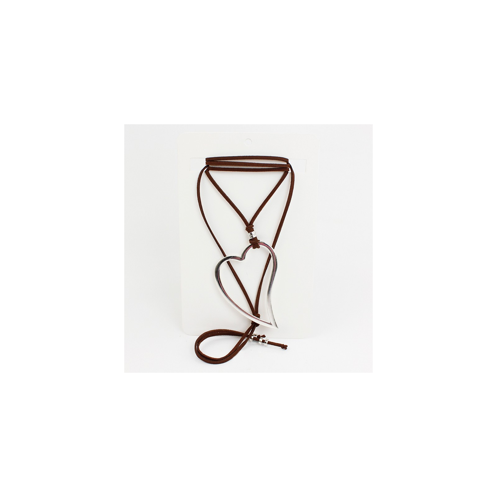 Collar de gamuza de múltiples vueltas, con dije exclusivo de fundición con forma de corazón y terminales en punteras.